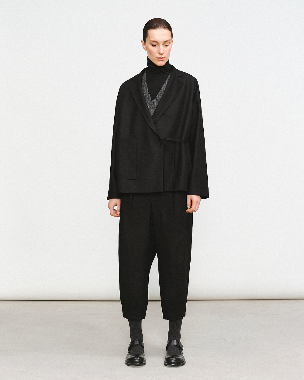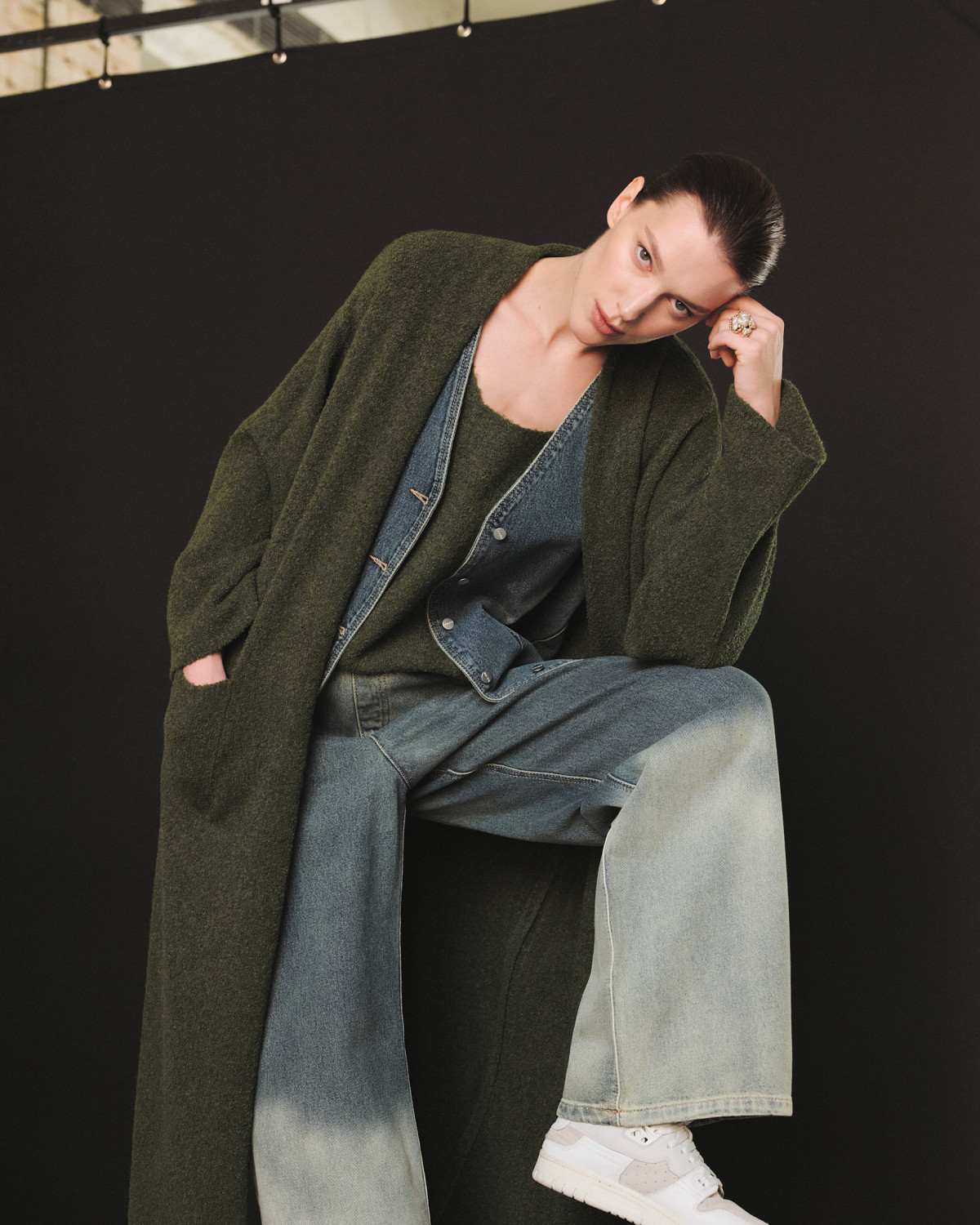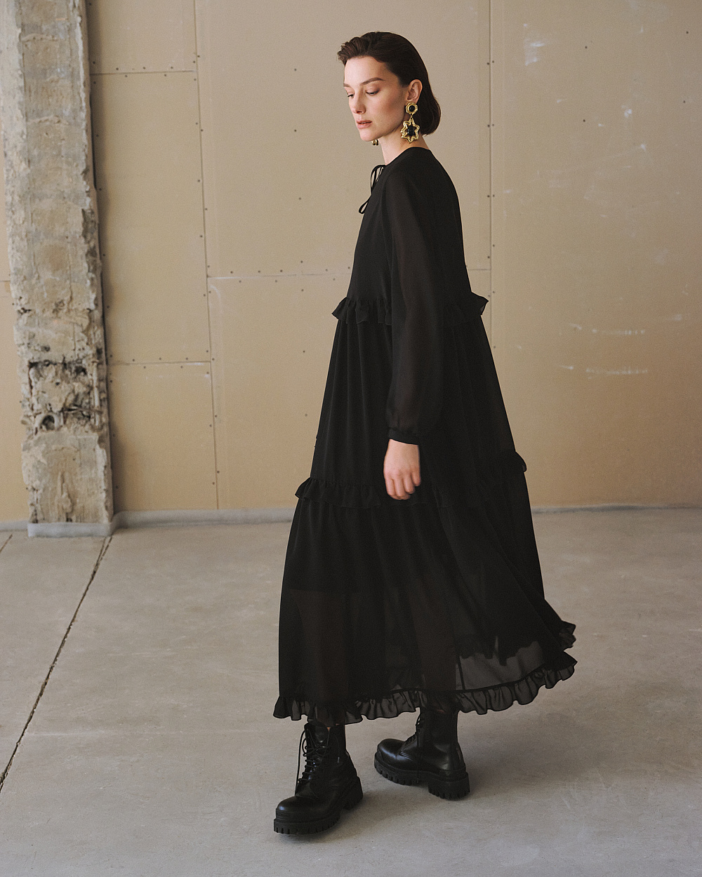 Немає нічого красивішого, ніж поєднання важких силуетів і фактур з легкими, напівпрозорими й невагомими. У моєму розумінні багатошаровість — це про велику кількість одягу, але без відчуття важкості, це про таємничість і сексуальність. Тому мені найбільше відгукуються костюмні тканини з прозорими, мереживними або тими ж в’язаними. Це виглядає надзвичайно затишно.