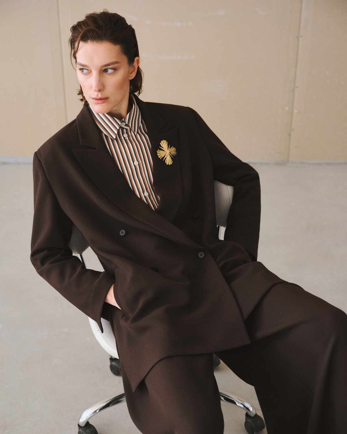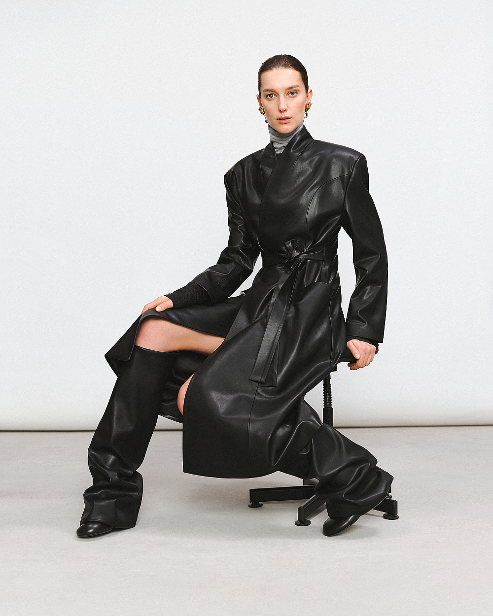 Коли настає осінь, мені найбільше відгукуються дорогі костюмні тканини. Вони надзвичайно м’які й після літнього сезону дозволяють плавно перейти до прохолоди. До того ж не сковують рухів. Також мені подобається працювати з екошкірою, оскільки осінь — це пора сильних вітрів і дощів. У теперішньому сезоні ми додали до цього матеріалу перфорацію. Це все для того, щоб зробити шкіру цікавішою.