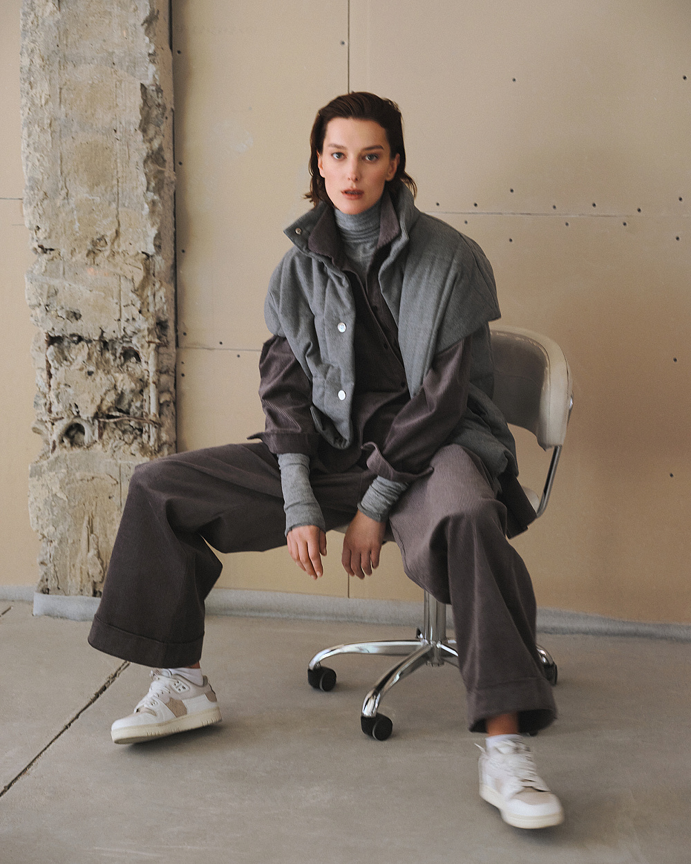 Щодо популярності відтінків, то мені не подобається, коли всі одягаються в бордовий чи коричневий. Саме тому у своїй колекції Rebellion я ніби й дотрималася цих відтінків, але додала також більше легкості. Так, замість коричневого постав бежевий, а замість важкого хакі — світлий оливковий. Адже якщо подивитися на тогорічну лінійку W8LESS, то можна побачити всі популярні кольори цього року. Тож тепер хочеться чогось нового.