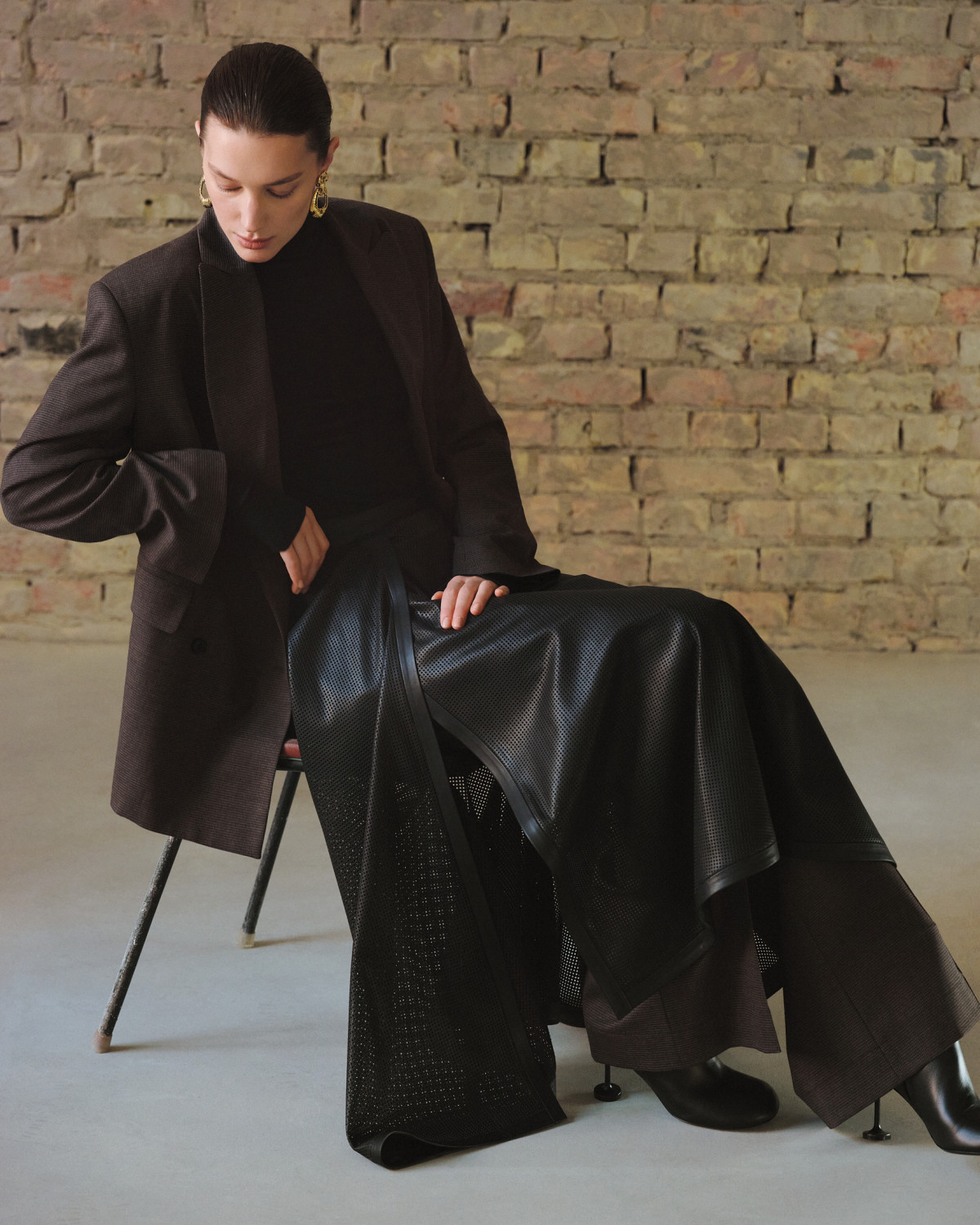 Немає нічого красивішого, ніж поєднання важких силуетів і фактур з легкими, напівпрозорими й невагомими. У моєму розумінні багатошаровість — це про велику кількість одягу, але без відчуття важкості, це про таємничість і сексуальність. Тому мені найбільше відгукуються костюмні тканини з прозорими, мереживними або тими ж в’язаними. Це виглядає надзвичайно затишно.