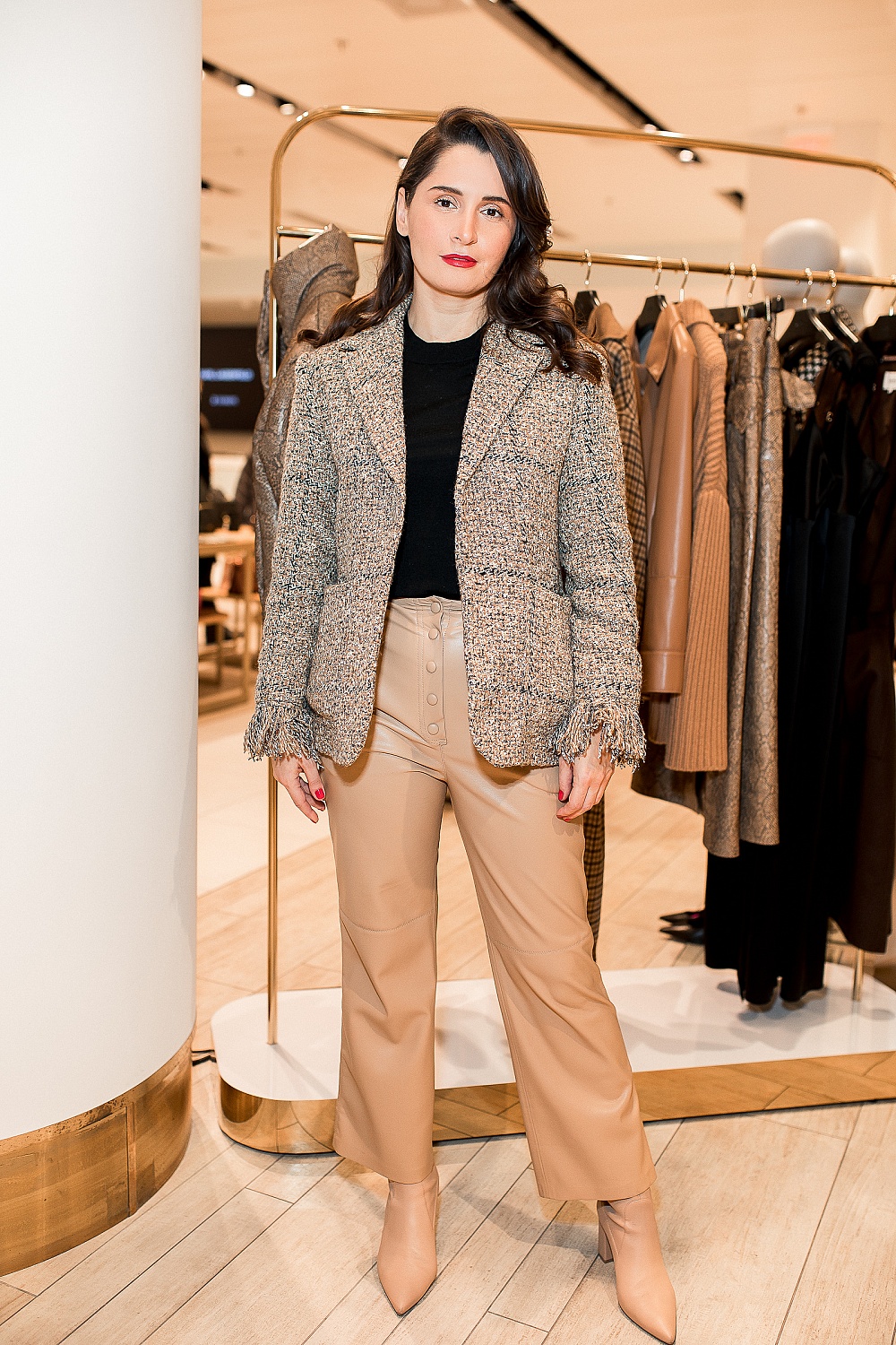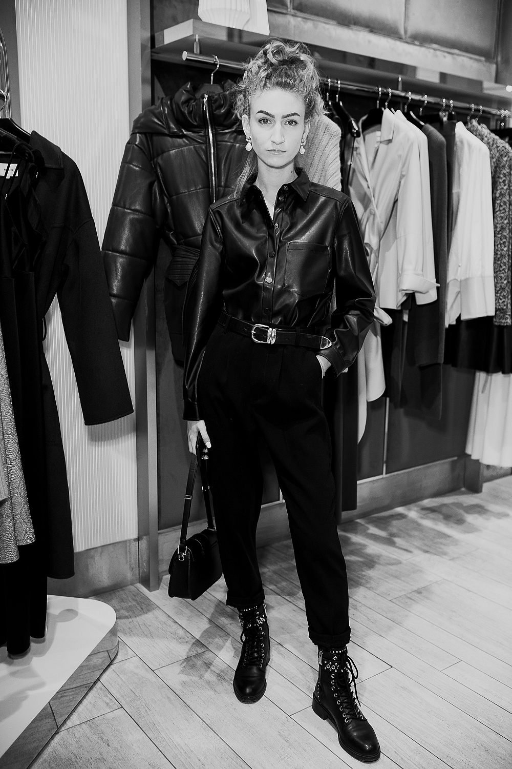 Меня вдохновляют 1990-ые: минимализм, функциональность, объемный силуэт. Если говорить о конкретных вещах, то визитная карточка Nanushka – это рубашки из искусственной кожи, платья с поясом и трикотаж. Многие модели у нас переходят из коллекции в коллекцию – мы только меняем цвет или материал.