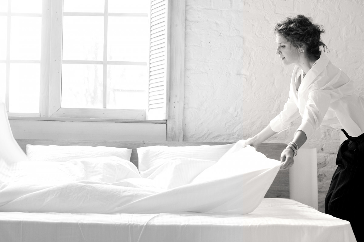Это должна быть светлая комната — серые, молочные или белые тона. Я очень люблю белую постель. Белоснежная простынь и подушка – это вообще must. Я не поклонница шелкового постельного белья. Люблю натуральные хлопковые ткани. В спальне мне хочется, чтобы было пространство. Меньше шкафов. Поставить зеркало, несколько полочек для литературы и других нужд. И все. Еще для сна очень важно (я для себя недавно открыла) увлажнитель воздуха. Я каждый вечер включаю его, чтобы легче дышать. И мне это действительно помогает. Ты себя даже чувствуешь по-другому — лучше.