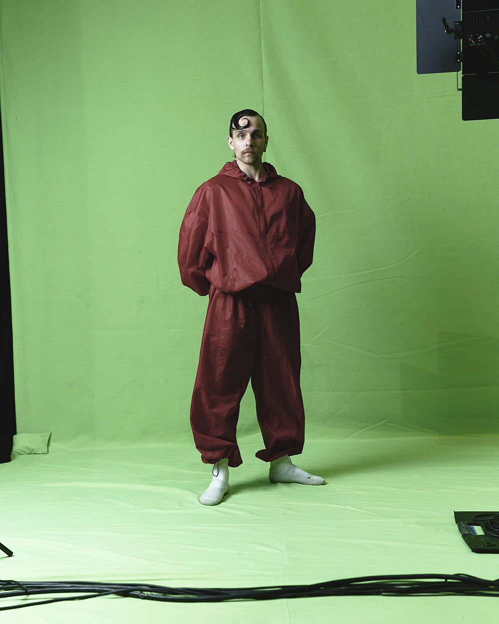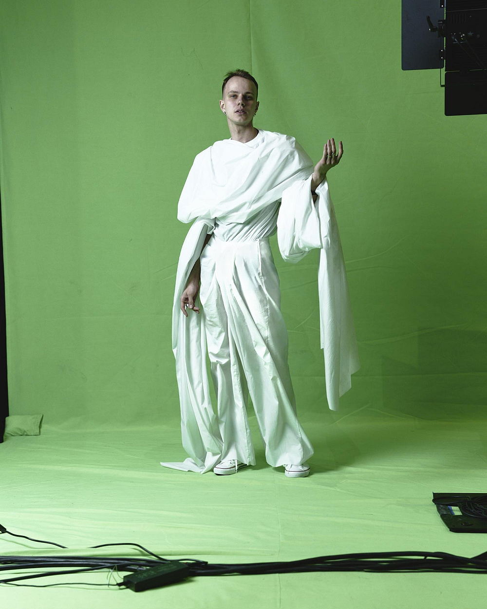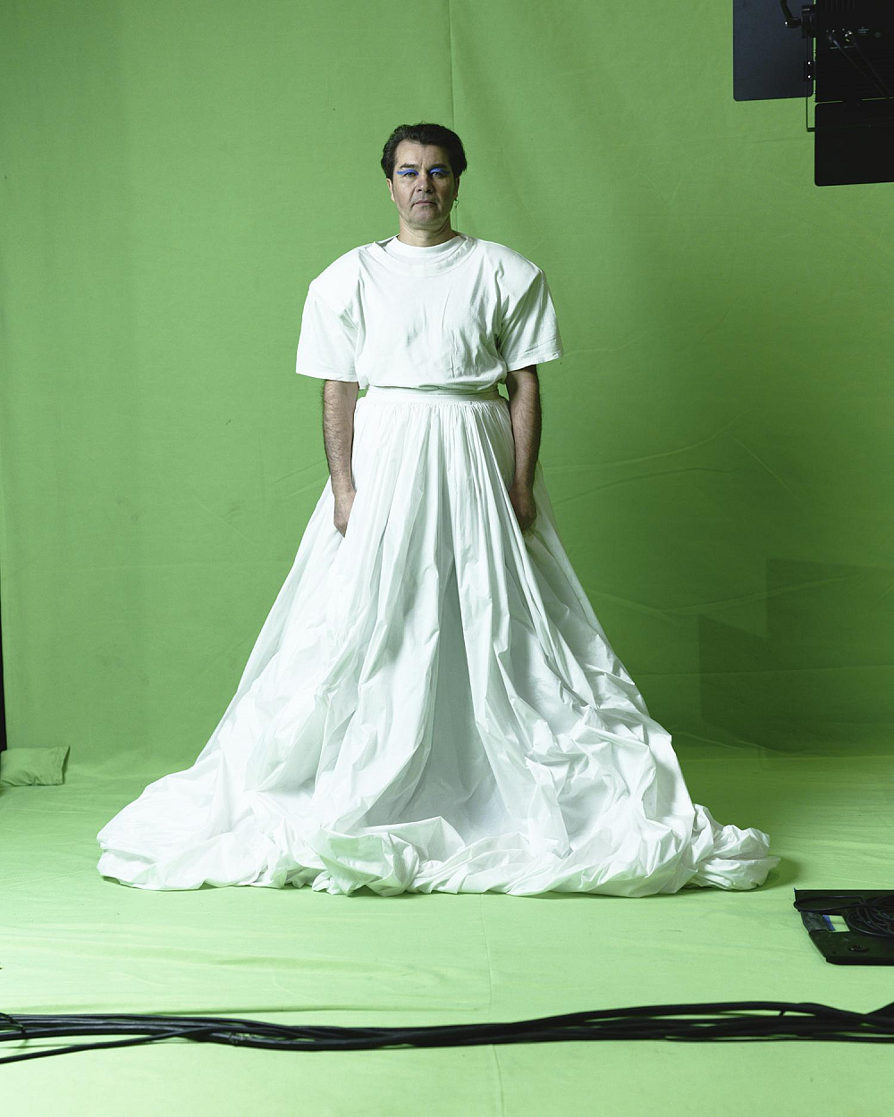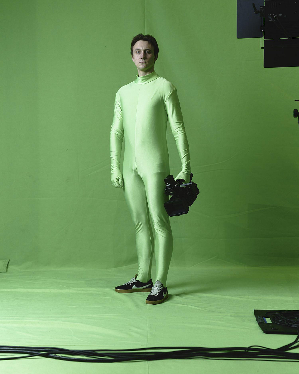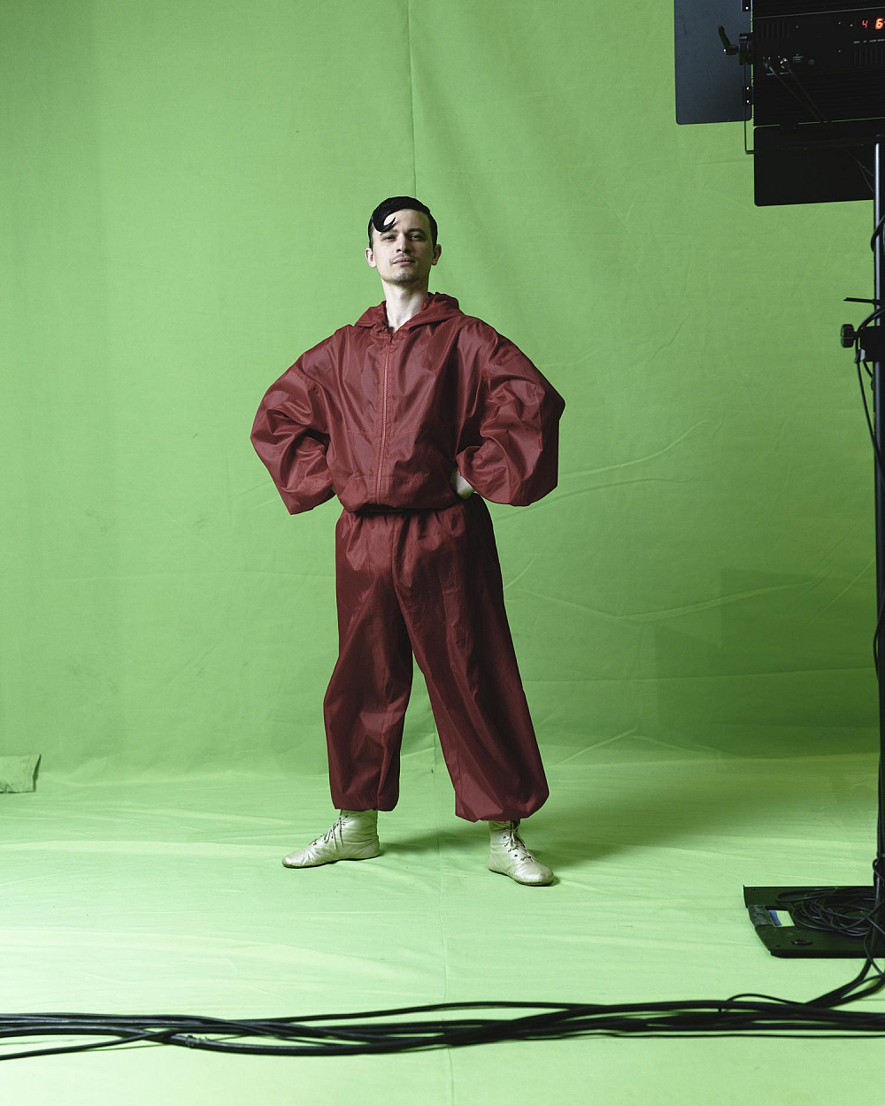 Масштабуючи зелений знімальний фон до абсолюту, заповнюючи ним сцену від стелі до оркестрової ями, змушуючи будь-якого героя виходити в це поле, я створюю тотальний маніпулятивний простір і ставлю німе запитання про те, хто має агентність в цьому полі для виголошення наративу та як він цю агентність здобув.