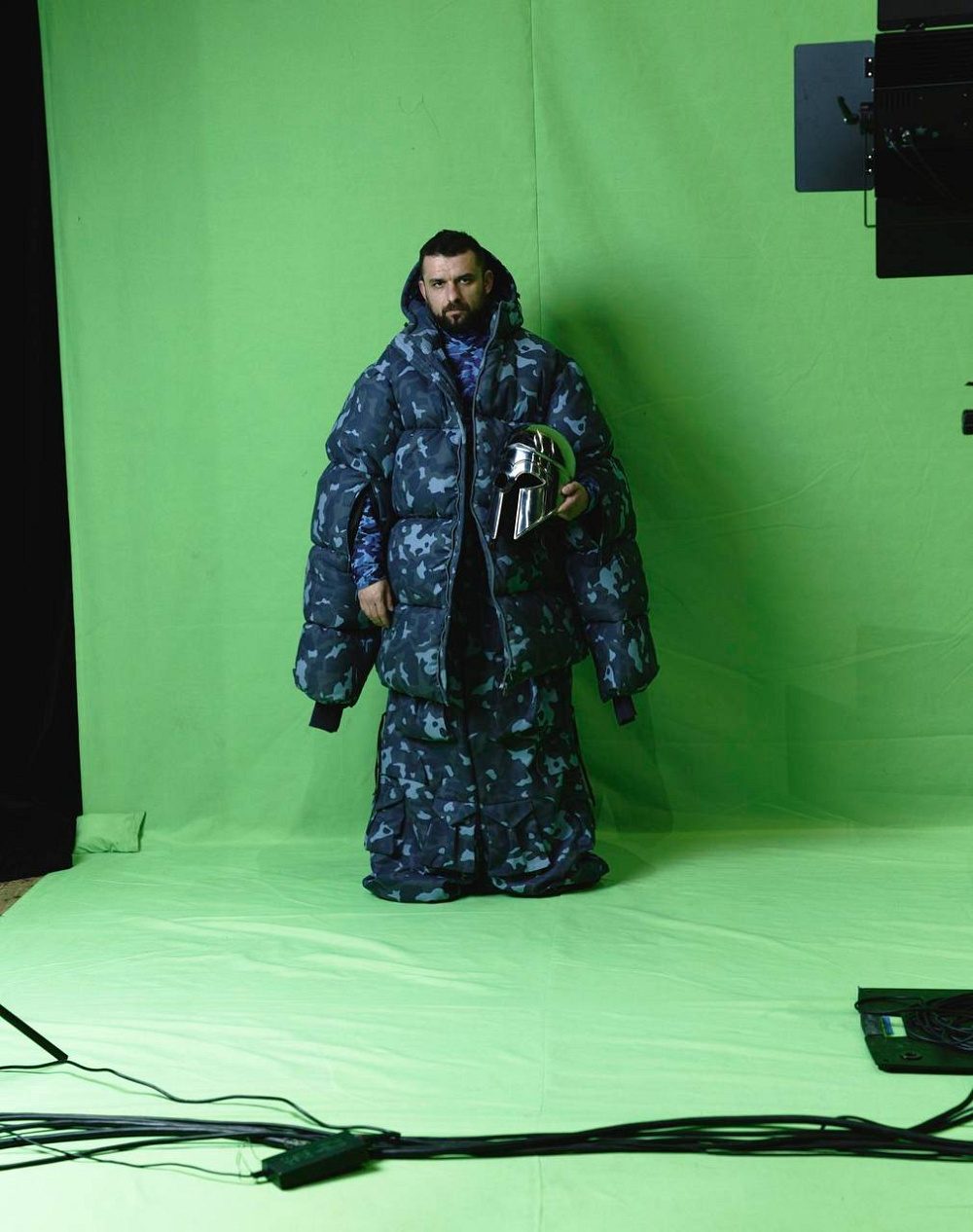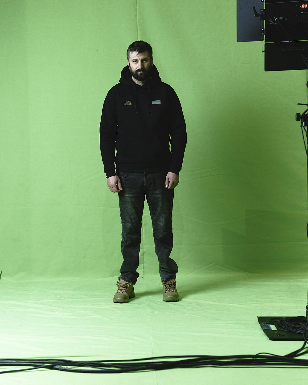 Знімальний майданчик символізує виробництво реальності, відповідно — міфотворчість, що особливо актуально та нероздільно повʼязано з нашим перебуванням у «Війні в прямому ефірі», цитуючи назву статті Діани Буцько на «Детектор медіа», в якій вона розглядає питання цензури, допуску ЗМІ до прифронтових і фронтових територій.