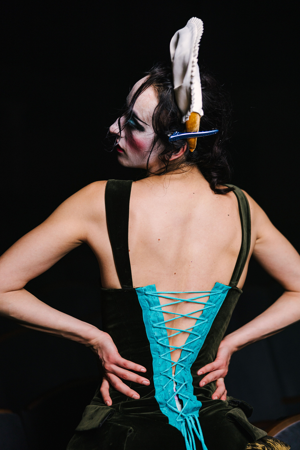 У нас дуже багато деталей і складний крій костюмів — для цього потрібні відповідні образи. Я хочу навіть просто фактурою тканини виявити характер, через кожну деталь. Наприклад, майже ніде в костюмах у мене немає блискавок — тільки шнурівки. Навіть одягати цей костюм складно, бо як актору, так і глядачу має бути відчутно, що це не щось швидке і поверхневе. Я намагаюся використовувати різні техніки крою — наприклад, старі занижені талії.