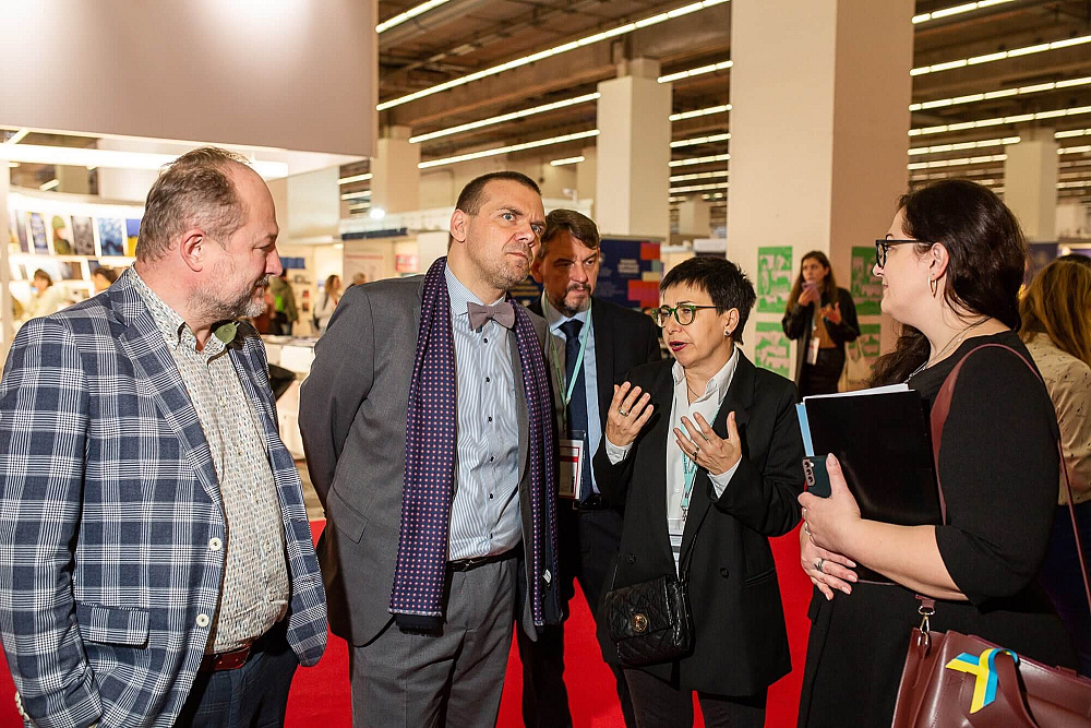 Леся Пахарина довідалася в організаторів та учасників національного стенда про їхню участь, враження від події та міжнародну підтримку України, яка переживає надважкі воєнні часи.
