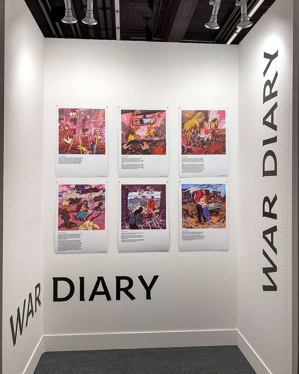 Ми дуже активно робили виставки з 24 лютого, перша була організована десь через 10 днів після початку війни в Будапешті, і далі закрутилося. Нам писали багато ілюстраторів з усіх куточків світу, допомагали організовувати виставки у своїх країнах. Наприклад, у Німеччині в нас було більше 10 виставок. Ми познайомилися з багатьма людьми, які хотіли нашу виставку промотувати, таким чином, про нас дізналися організатори ФКЯ й запропонували взяти участь, надали безкоштовний стенд. Ми, чесно, про таке навіть не мріяли.