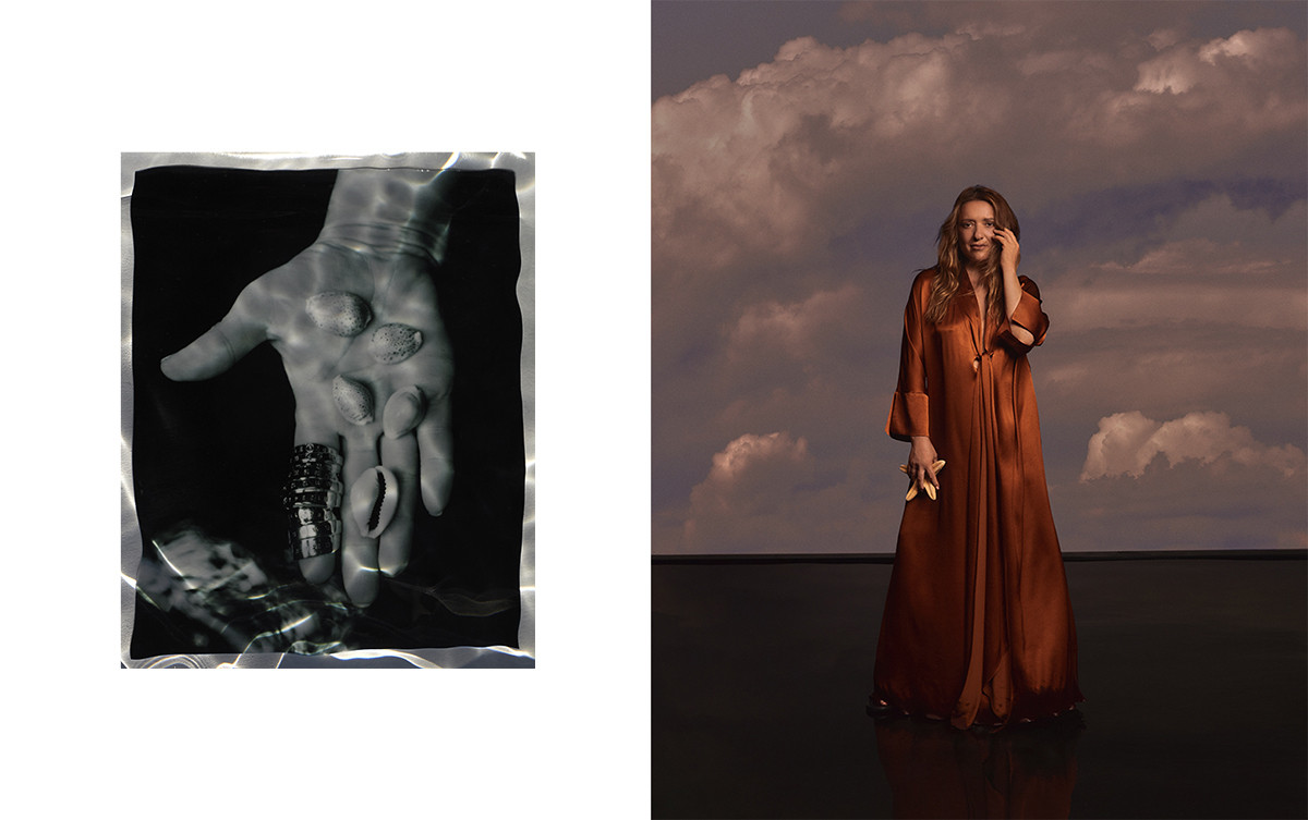 Ліворуч: перстень MM6 Maison Margiela (ЦУМ). Праворуч — сукня, Bobkova; босоніжки, Ann Demeulemeester