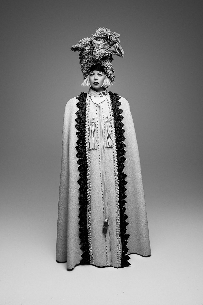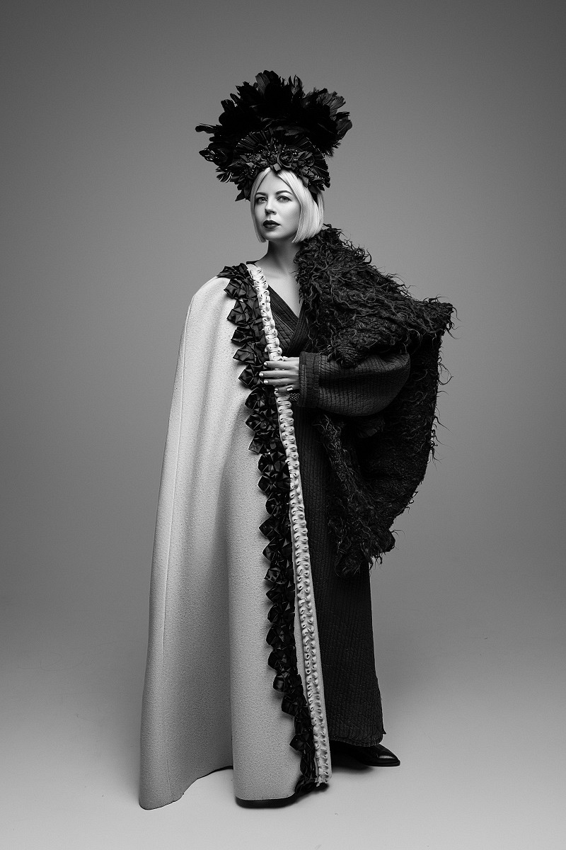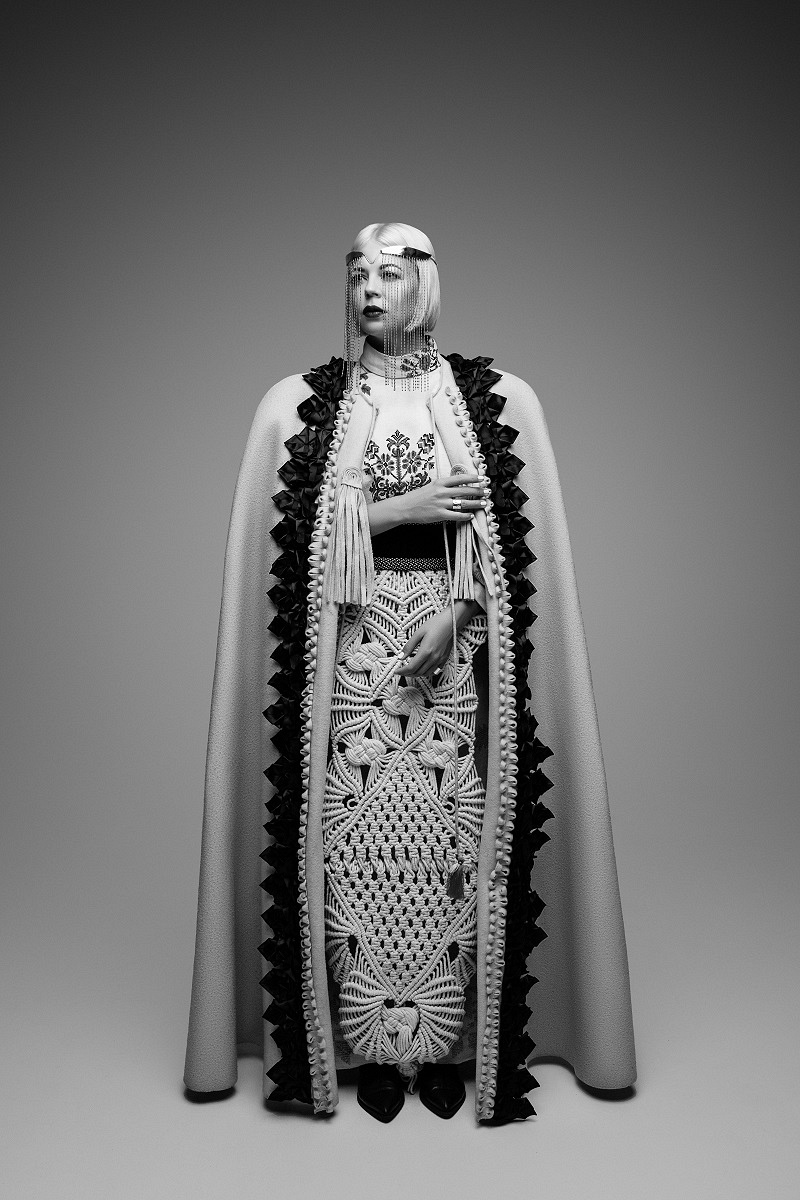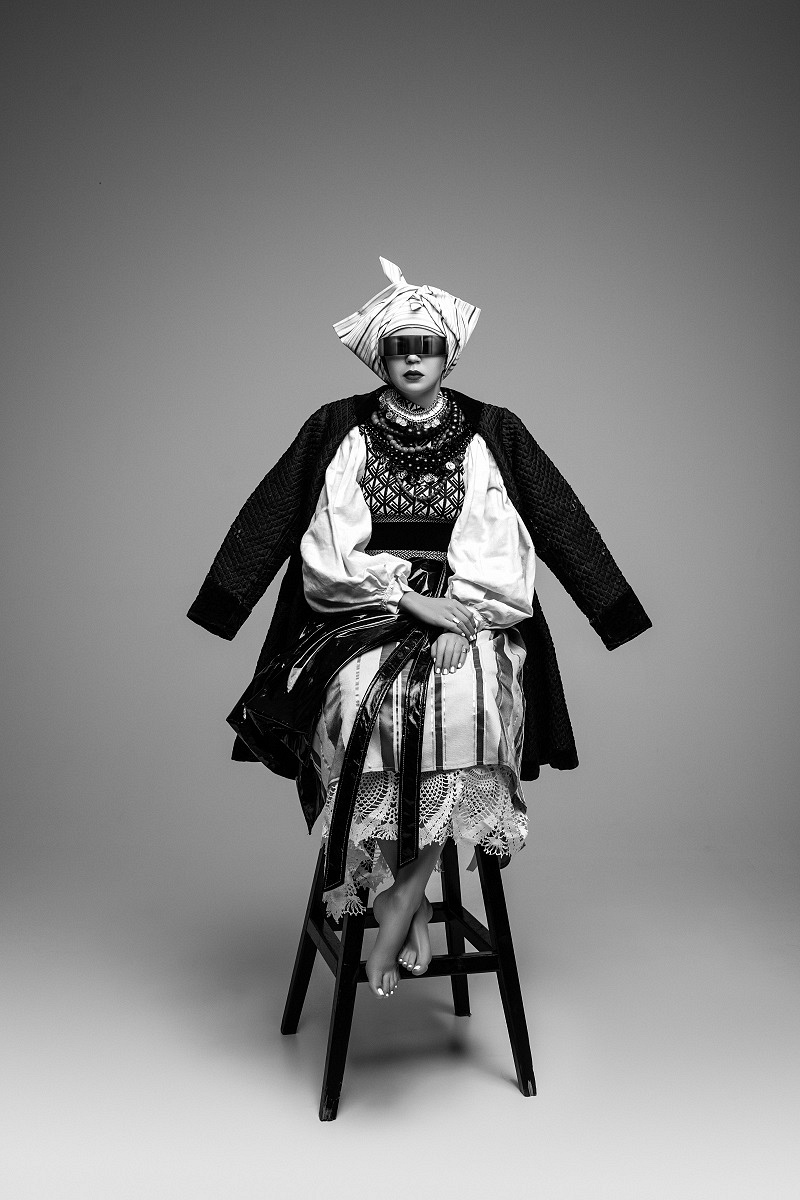 Леся Патока: Я надихалася ідеєю міксування текстур, фактур та узорів. Саме завдяки чорно-білій зйомці тут можна розгледіти їх. Для створення образів ми використовували речі з моїх власних архівів, хоча щось я брала на Кіностудії Довженка, інше знаходила на київських барахолках чи замовляла на Olx. Загалом, це був експеримент, який з однієї листівки трансформувався в незвичайно красиву зйомку, де зійшлися різні частини та часи України.