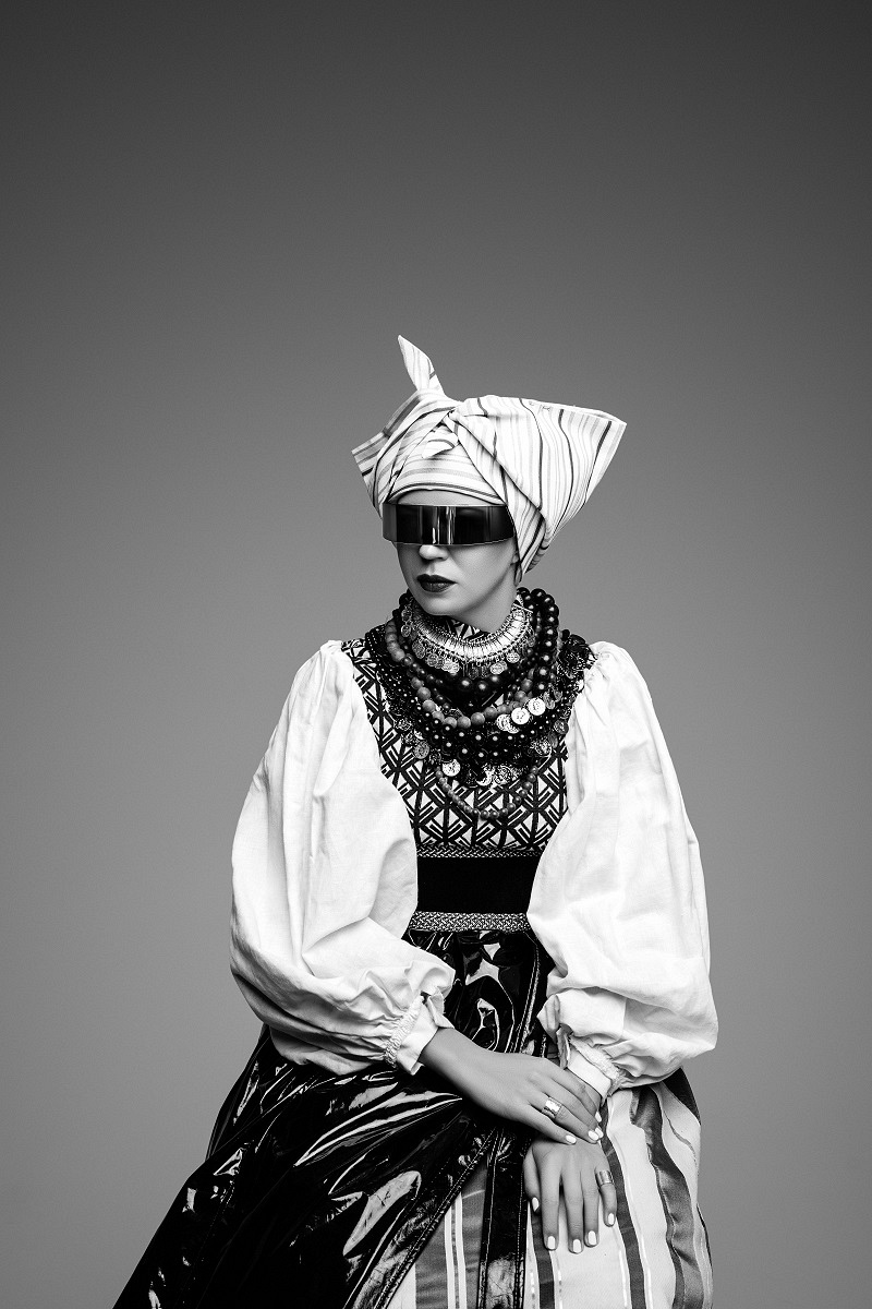 Н.Ж: Ще посеред літа Леся Патока запропонувала створити листівку до Дня незалежності України, та обмежитися одним образом, одним фото в нас не вийшло. І от так ідея для однієї листівки трансформувалася в масштабну зйомку, результати якої ви можете побачити сьогодні. На зразок того, як ми разом з НАОНІ поєднали електроніку з народними інструментами, так і Леся деталь за деталлю створила автентичні образи, які поєднали в собі Україну теперішню і давніх часів.