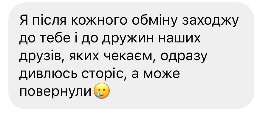 І це моменти, коли я підбираю кожне слово в розмові й часто впадаю в ступор. Ніякого зв’язку, ніякого розуміння взагалі, де приблизно вони можуть бути, немає. Живеш у невідомості.
