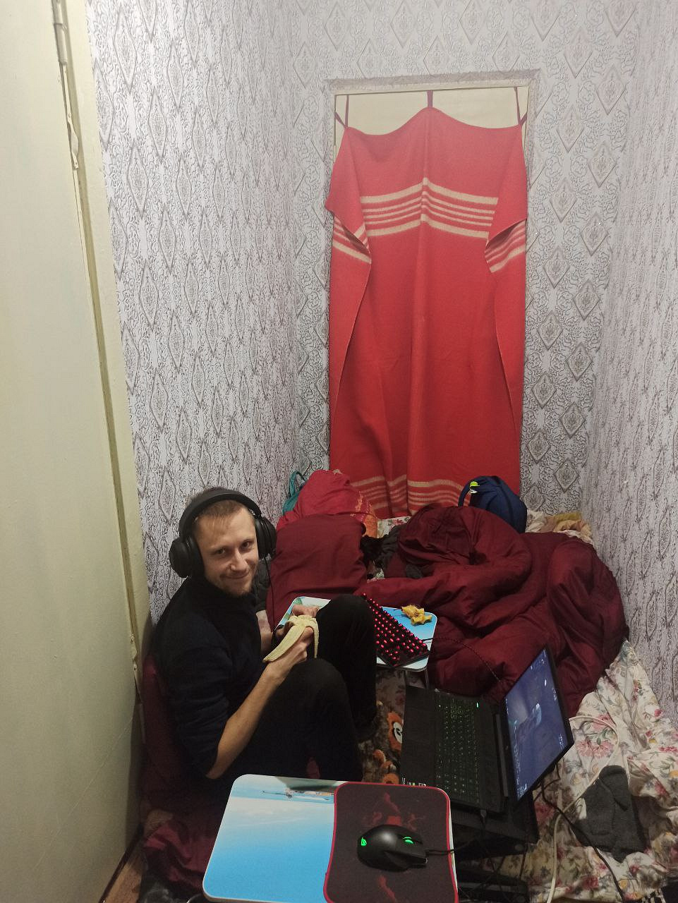 Ти прокидаєшся о 4:00, бо чуєш, як він летить над твоїм будинком, хапаєш кішку і біжиш у загальний коридор, бо твій підвал не є надійним укриттям. Чуєш, як щось бахкає (зазвичай двічі), а потім літак летить назад і ти сидиш сподіваючись, що він пролетить повз. Переломною ситуацією для мого хлопця став обстріл школи, що через дорогу від нашого будинку. Коли це почалося, ми вибігли в загальний коридор, до нас спустилася моя мама, яка живе вище. Ми сиділи і чули, як сиплеться скло.