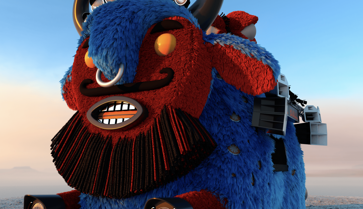 Цьогоріч на Burning Man українці презентували «Синього бика» — десятиметрову рухому платформу, оздоблену хутром, декоративними деталями та світловими інсталяціями.