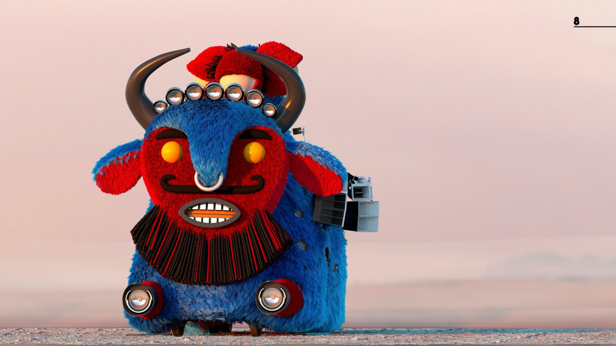 Над «Синім биком» працювала команда дослідно-конструкторського бюро «Майстерня чудес» під керівництвом Міті Зінов’єва за участі художника-дизайнера Ростислава Дудченка. Вони презентували сучасну інтерпретацію українського наївного мистецтва, його символів та архетипів.