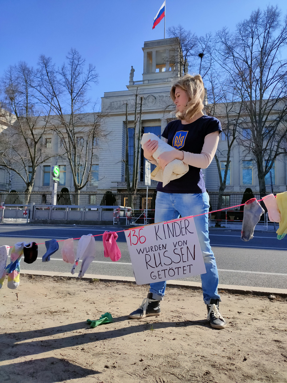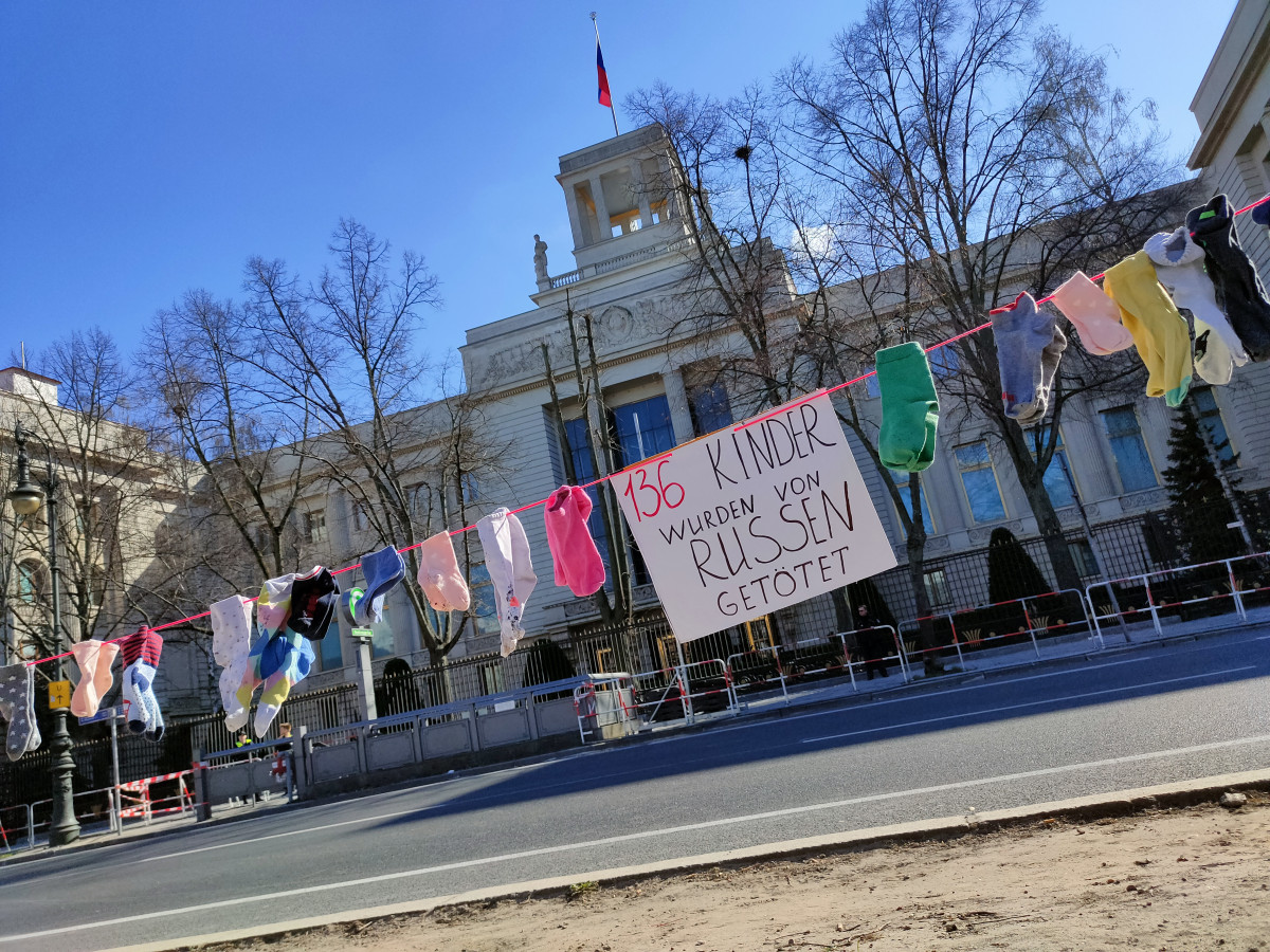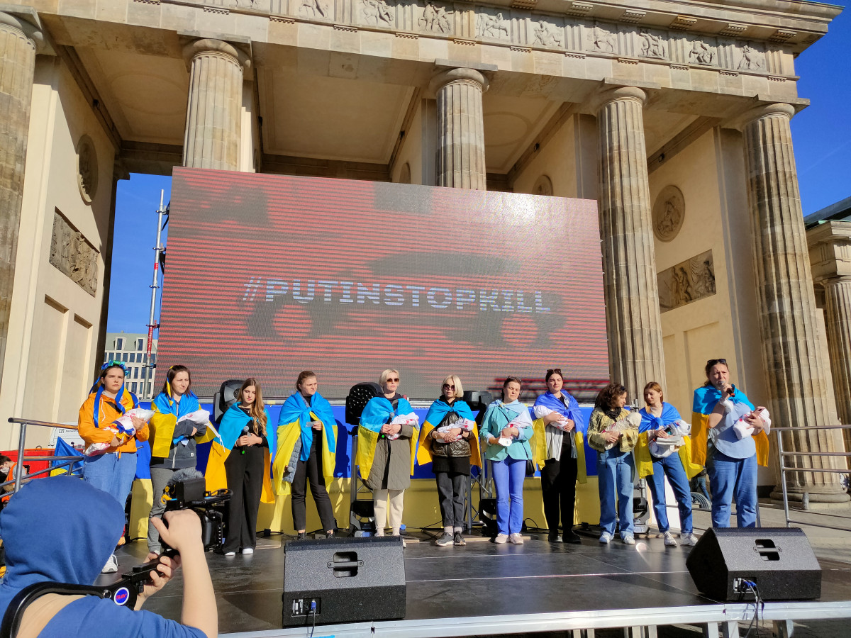 У Берліні акція пройшла перед стінами російського посольства, де українські жінки організували перформанс на знак пам`ять про дітей, що загинули під час російської агресії в Україні. Стрічка із 136 розвішеними на ній парами дитячих шкарпеток символізувала 136 дитячих життів, що обірвалися лише за один місяць війни. Жінки співали колискові та тужливих українських пісень та ділилися своїми історіями. Опісля перфомансу матері пройшли маршем до Бранденбурзьких воріт, де долучилися до загальної демонстрації, організованої «Віче».