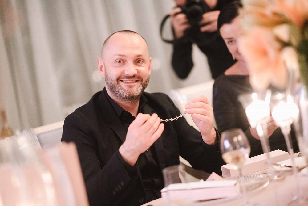 Дополнением утончённой атмосферы стал аккомпанемент виртуозного пианиста Юрия Салухи, изысканное шампанское Veuve Cliqout, роскошный ужин от шефа французского ресторана Comme Il Faut Стефана Вайттинадана, а также флористика и декор от цветочного бутика Kvitkova Vanil.