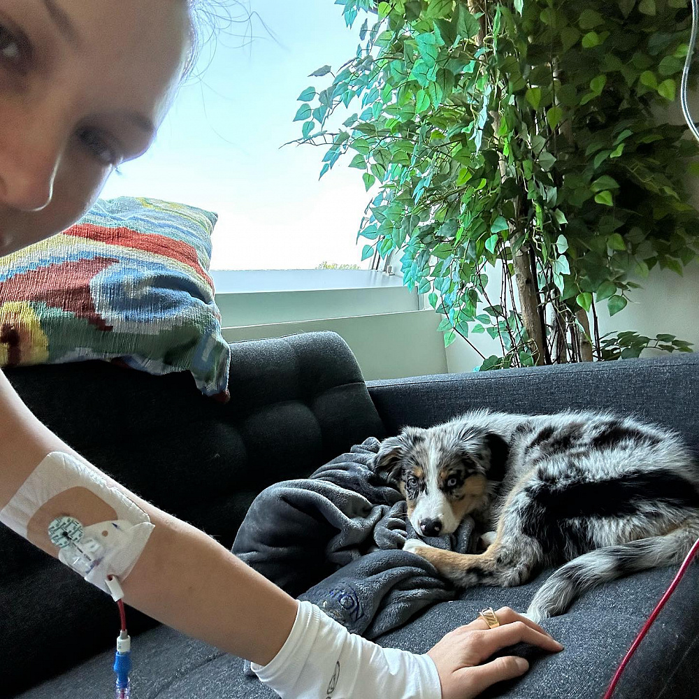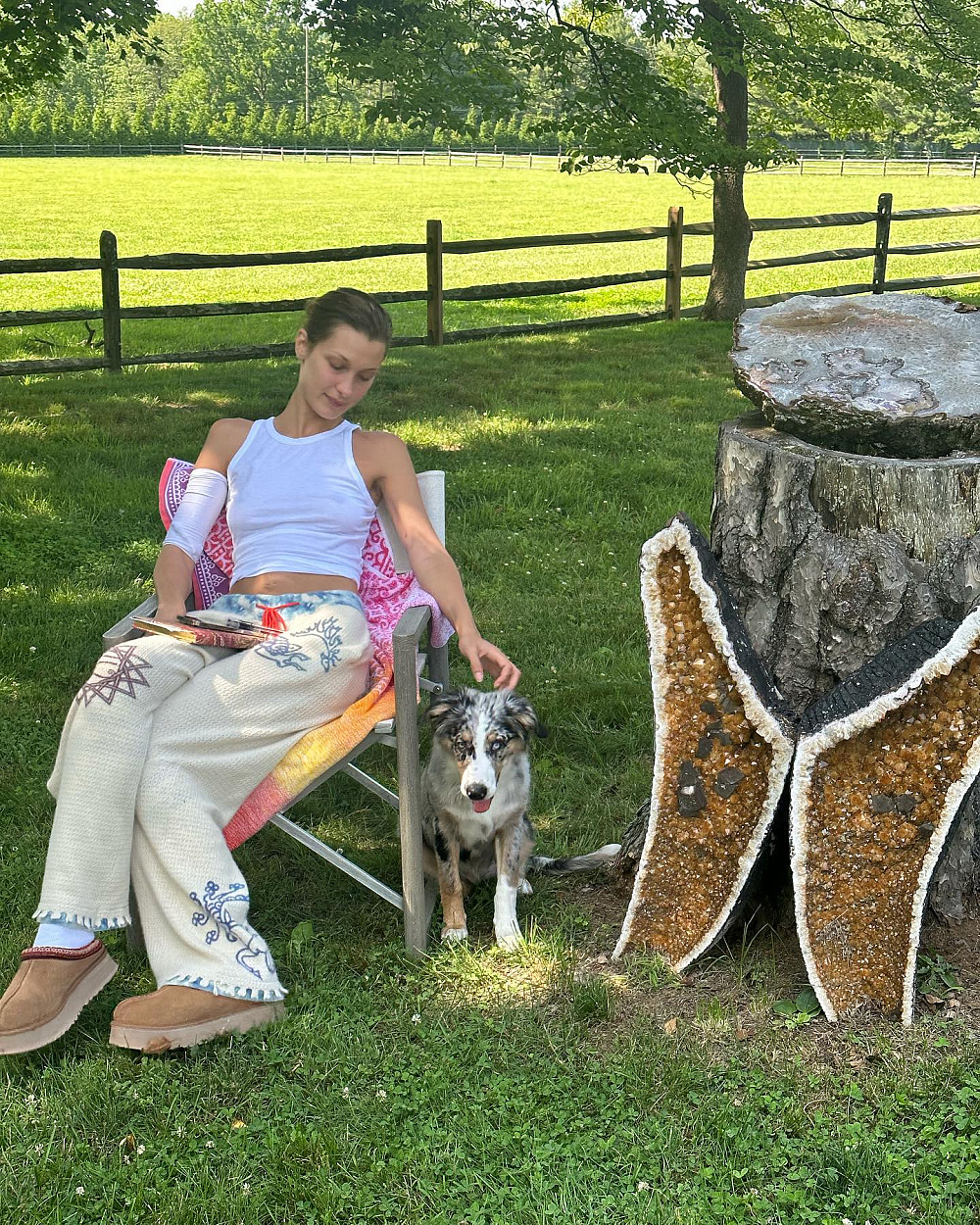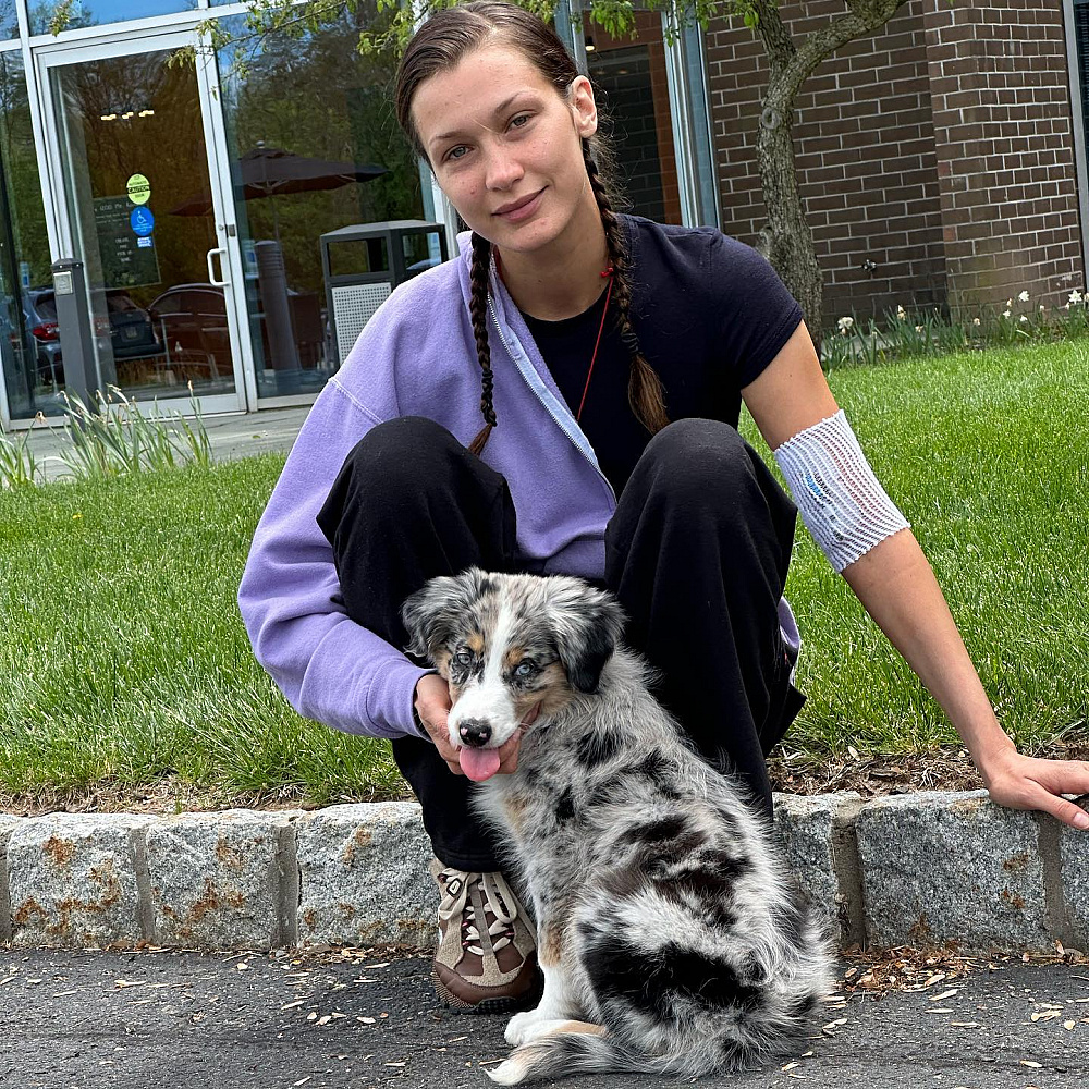 Однак Белла Гадід не почувалася самотньою під час боротьби, адже з нею поряд завжди була її собака Гліззі П. Бінс aka Петунія. Саме їй модель присвятила наступну свою публікацію.