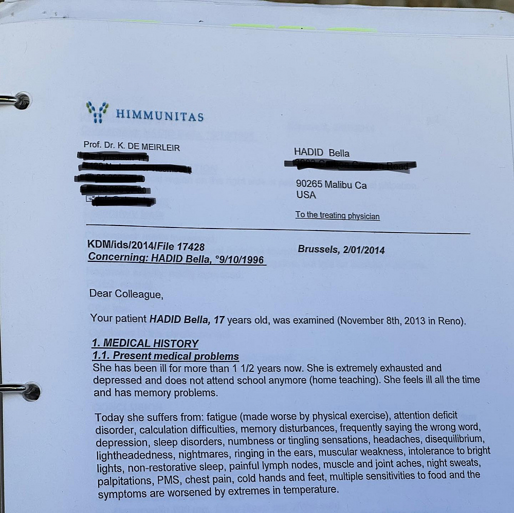 Напередодні Белла Гадід опублікувала фотографії, зроблені в найгірші моменти її боротьби з хворобою Лайма, а також уривки її медичних записів за понад десятиліття. У цей час Белла була однією з найпопулярніших моделей світу. В дописі до знімків вона розповіла, як сильно пишається собою, а також подякувала мамі та шанувальникам за підтримку і любов.