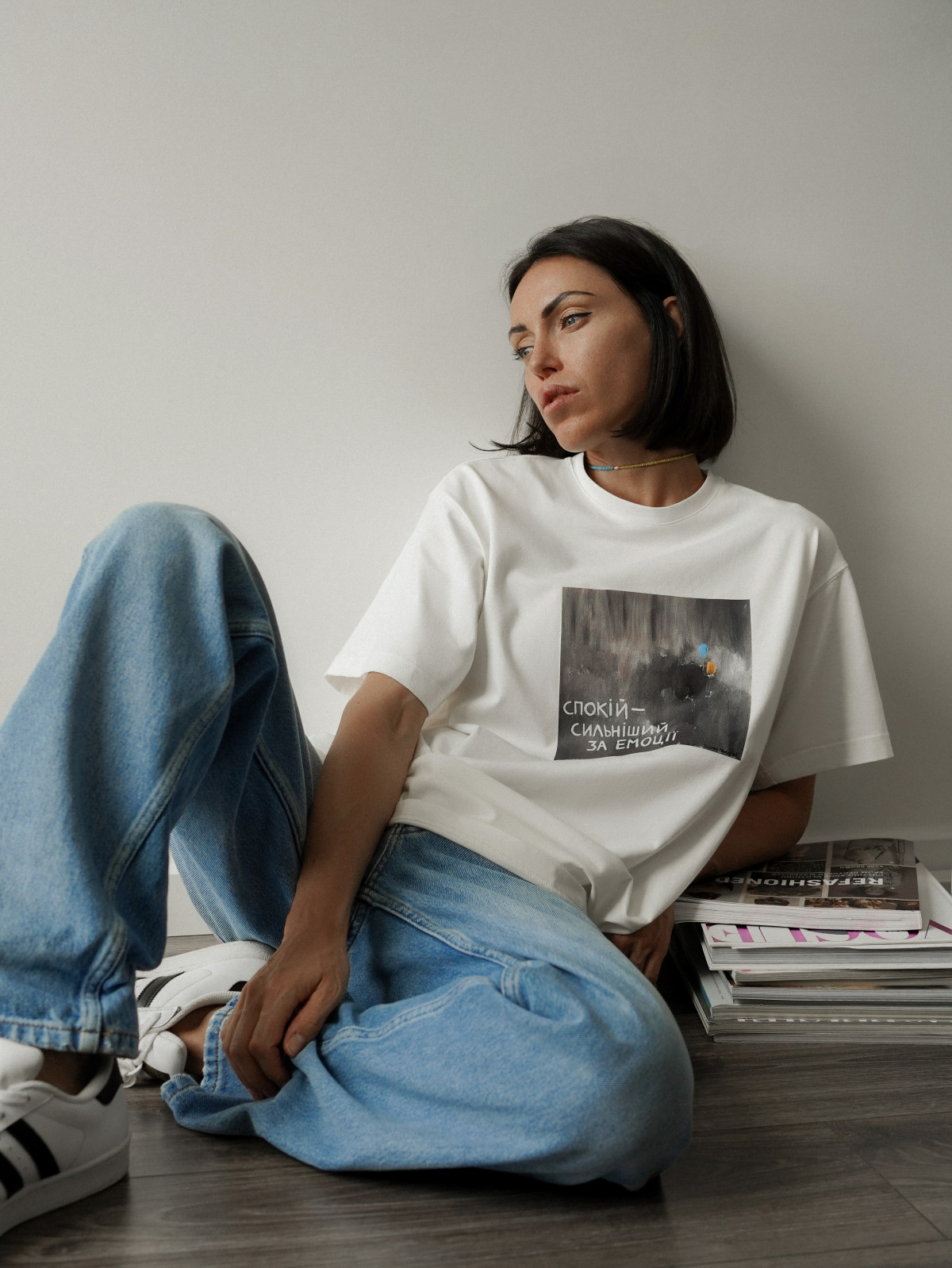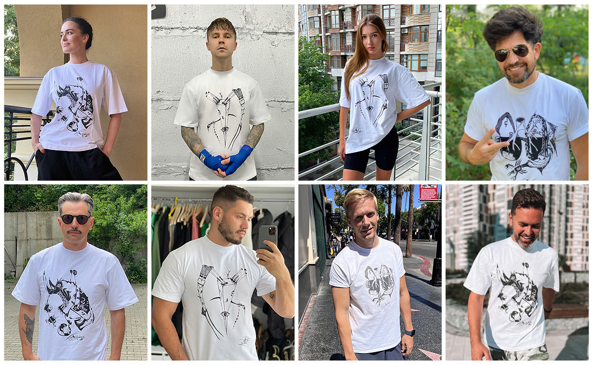 Колекція футболок білого кольору з принтами виставлена на продаж на сторінці проєкту в Instagram.