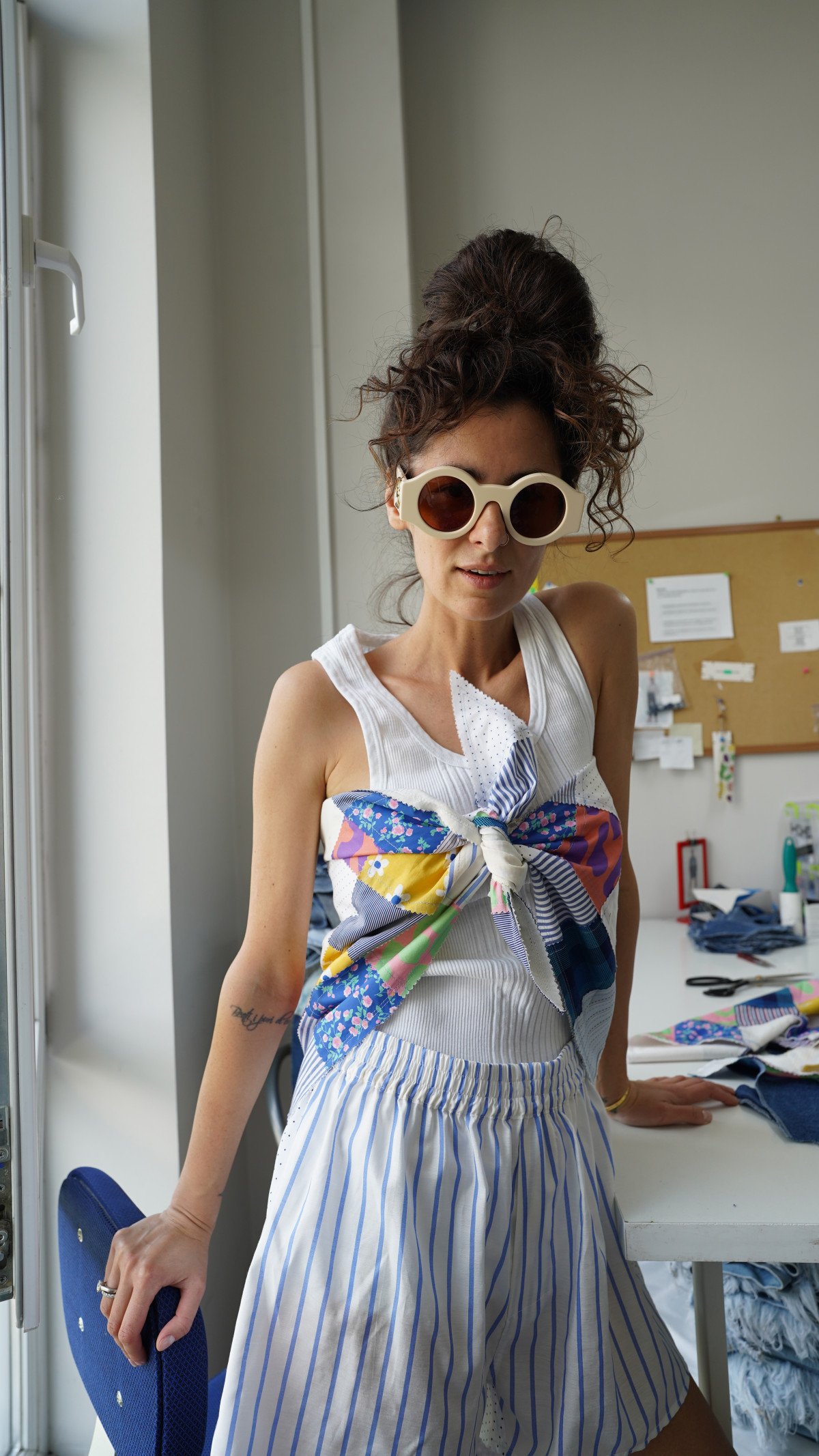 Дроп розробили у техніці печворк — маленькі клаптики збирали в суцільне полотно. Дизайнерки створювали речі із залишків тканин.