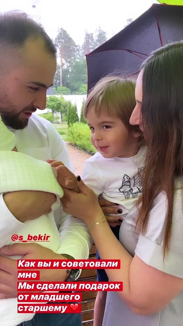 Затем певица с мужем отпраздновали рождения второго сына в кругу близких. Тогда же состоялась и первая встреча старшего сына пары двухлетнего Эмира-Рахмана с младшим братом. По совету подписчиков и друзей, родители подготовили для Эмира подарок от младшего сына.