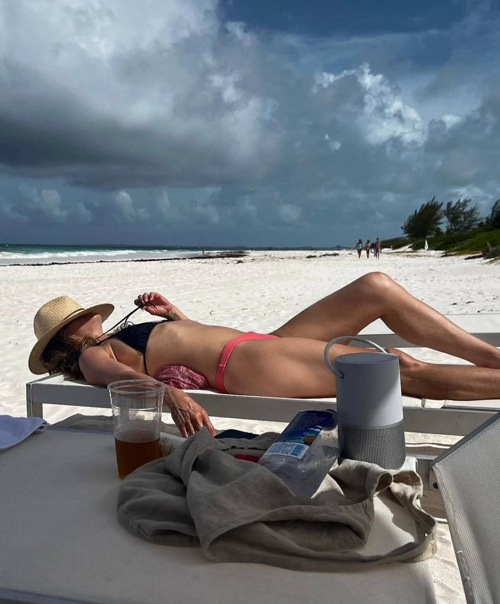 Американська акторка Дженніфер Еністон, яка здобула славу завдяки ролі Рейчел Грін у телесеріалі «Друзі», у своєму Instagram поділилася фото з відпустки. Вихідні Дженніфер провела на узбережжі, засмагаючи та гуляючи пляжем. Разом з акторкою відпочивали її друзі — Джейсон Бейтман і його дружина Аманда Анка.