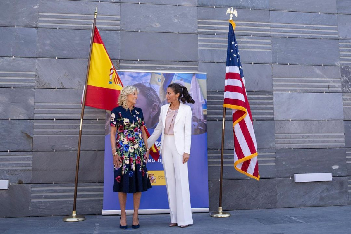 Джилл Байден та королева Летиція поспілкувалися з кількома родинами з України, які прийняла Іспанія. Також вони провели зустріч із представниками установ та організацій, які допомагають користувачам центру з різними послугами: оформляють документи, надають психологічну та медичну допомогу.