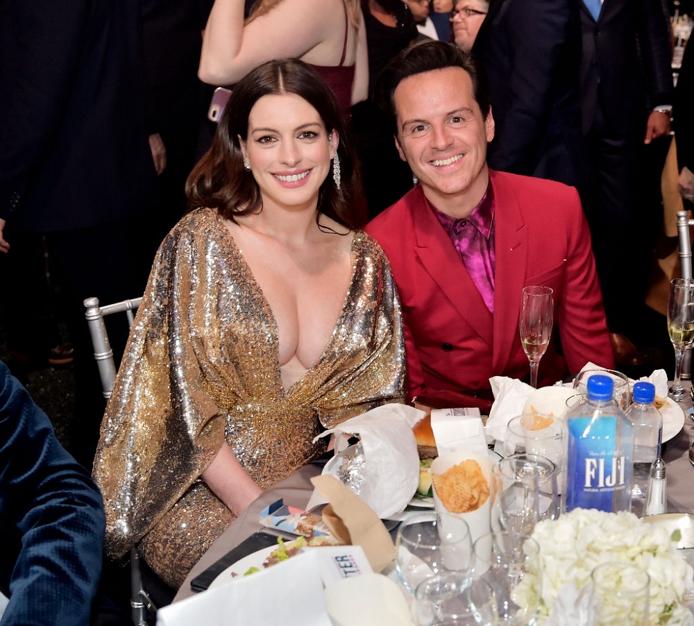 В конце ноября прошлого года Энн Хэтэуэй во второй раз стала мамой. К светской жизни актриса вернулась спустя два месяца. Накануне вечером она появилась на красной дорожке Critics’ Choice Awards. На Энн было золотое платье Versace из струящейся металлизированной ткани с глубоким декольте. Образ она дополнила золотыми туфлями Alexandre Birman.