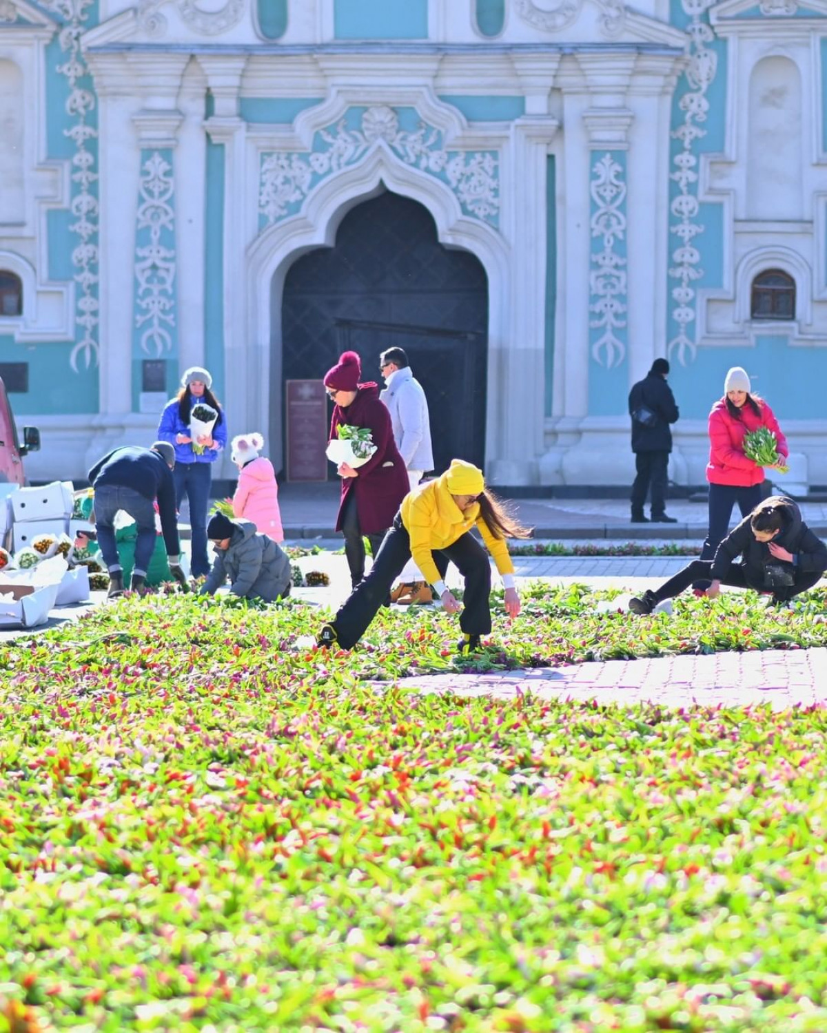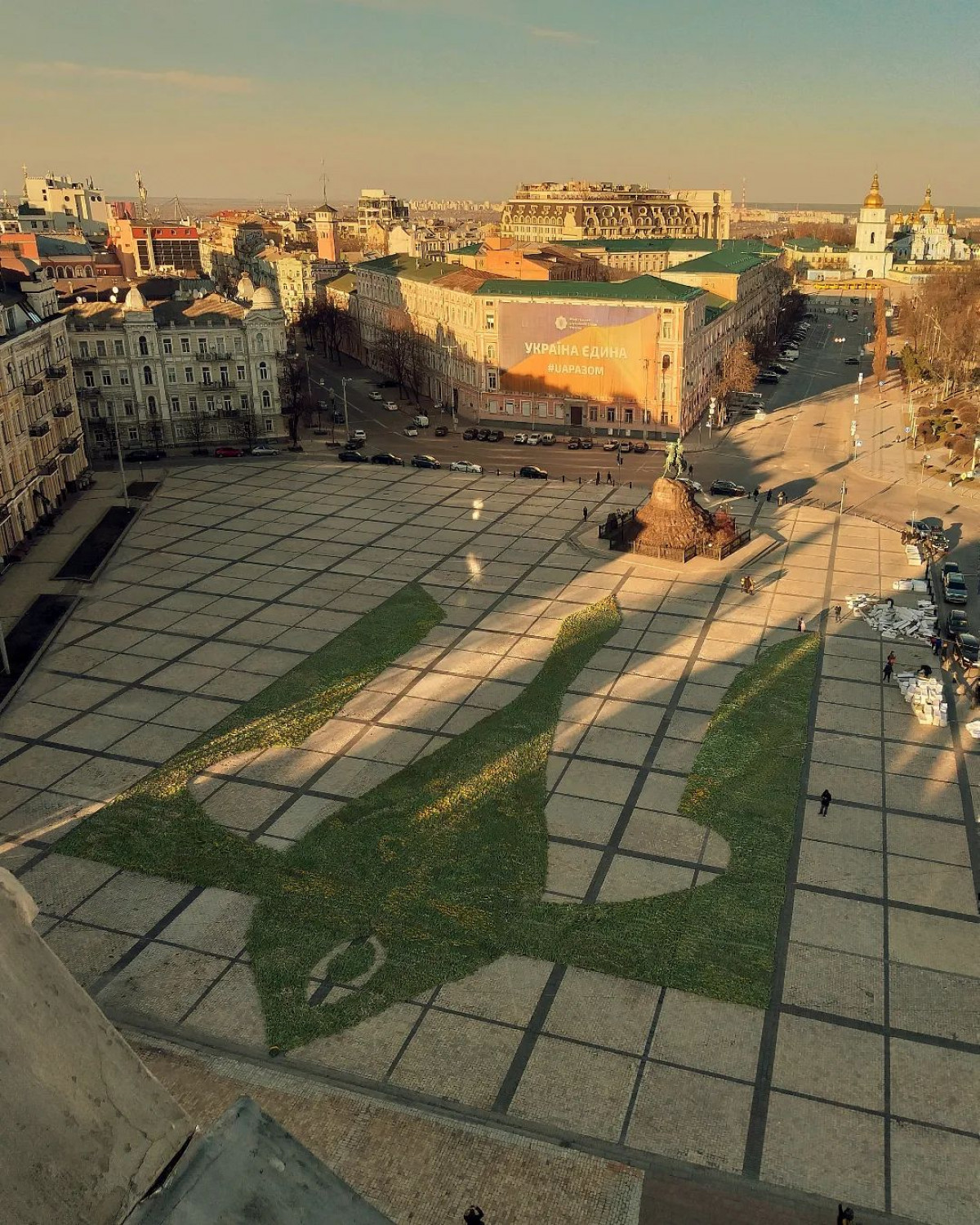18 березня Софійську площу в Києві прикрасили півтора мільйонами штук тюльпанів. До акції, яку організували активістки ГО «Андріївський узвіз», могли приєднатися усі охочі. Добровольці виклали квітами великий тризуб. Таким чином організатори акції на чолі з Тетяною Митрофановою вирішили нагадати, що жодна війна не в змозі скасувати весну. Як повідомляє BBC, квітковий тризуб вже подали до Книги рекордів України.