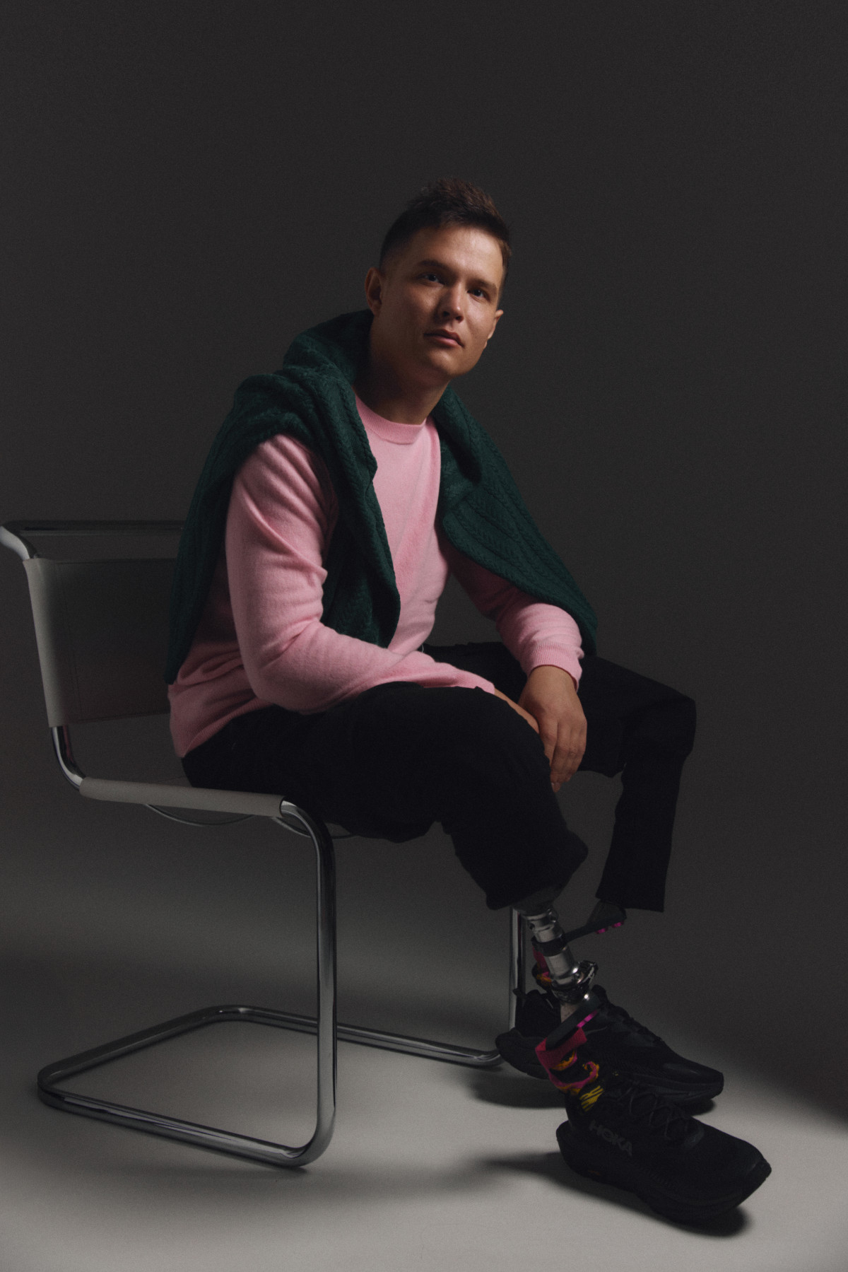 Серед героїв кампейну — Володимир Савельєв, що до початку повномасштабного вторгнення працював дизайнером у рідному Львові. В липні 2023-го він добровільно став до лав ЗСУ. Молодший лейтенант 53-го окремого стрілецького батальйону воював на Донбасі, зокрема у Старомайорську та на Покровському напрямку. Під час боїв отримав важкі поранення, які призвели до ампутації обох ніг. Нині Володимир проходить реабілітацію та вчиться ходити заново, поєднуючи відновлення з пошуками нового шляху в цивільному житті.