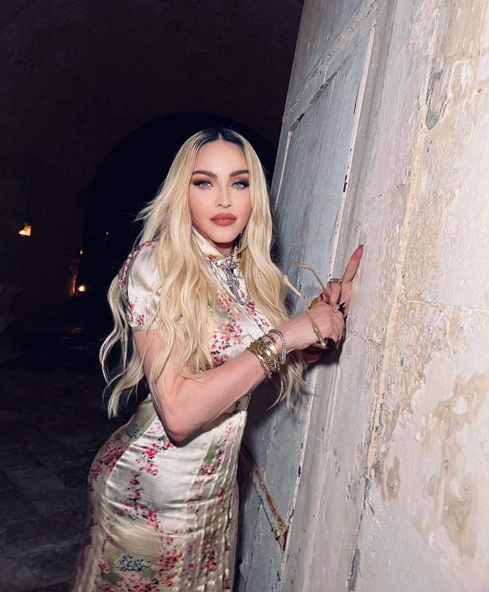 Для дня народження сина Мадонна обрала шовкову сукню з квітковим візерунком. Співачка доповнила образ великою кількістю аксесуарів.