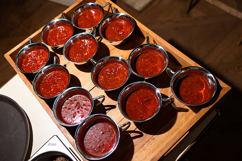 У меню були знайомі українські страви в сучасній інтерпретації: паляниця, яка вже стала одним із символів війни, борщ, котлета по-київськи, мініголубці та інше.