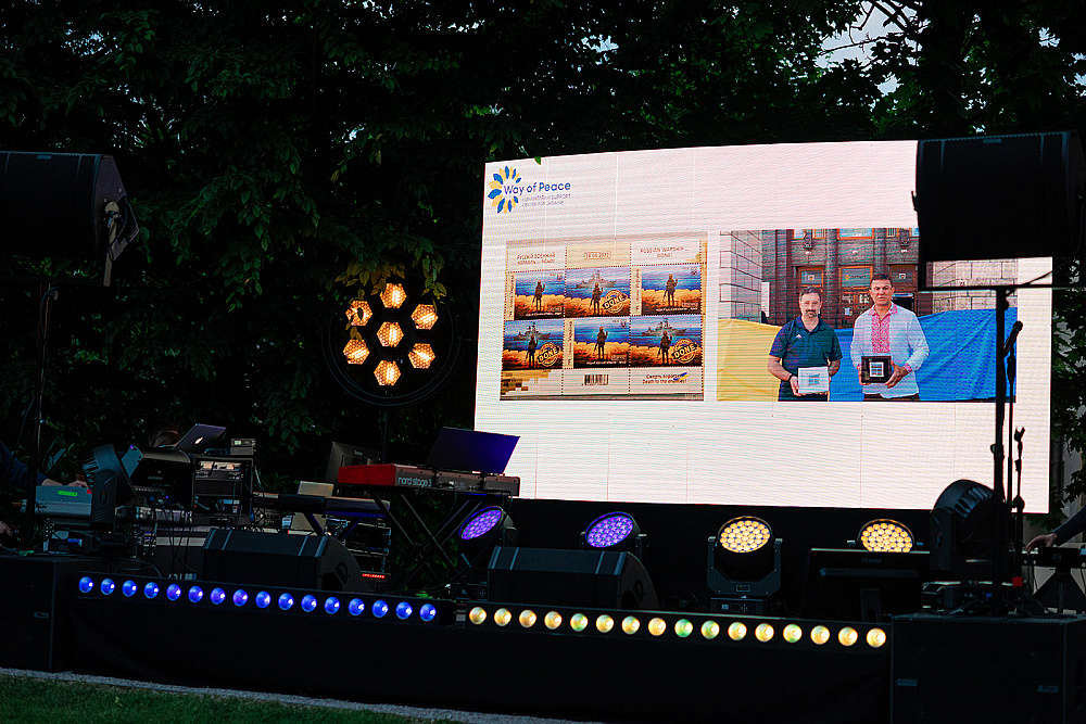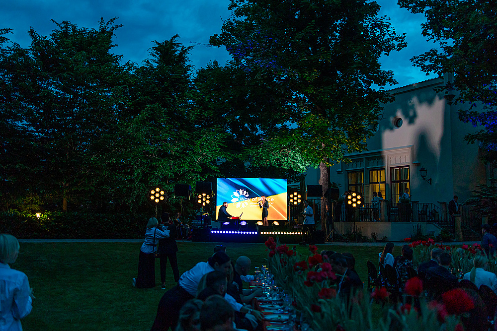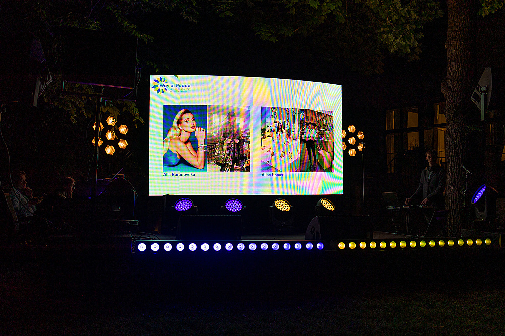 Гості благодійного заходу вшанували пам’ять загиблих героїв та безневинних цивільних людей хвилиною мовчання, а на екрані у цей момент транслювалися фото міст, що постраждали від російської агресії.