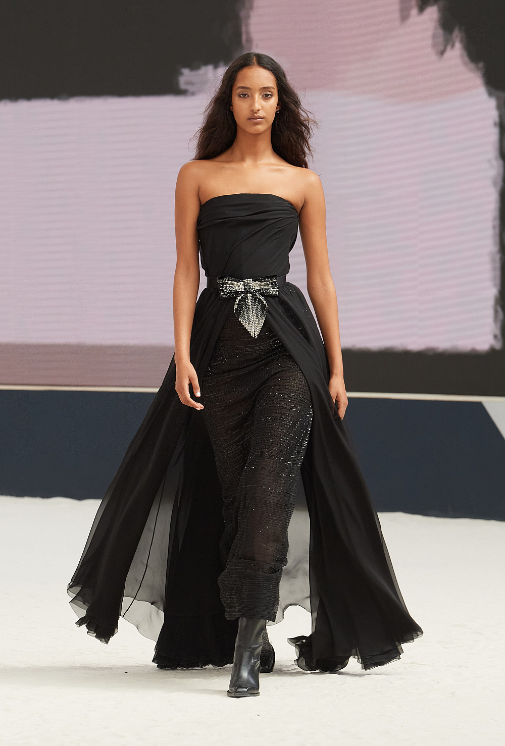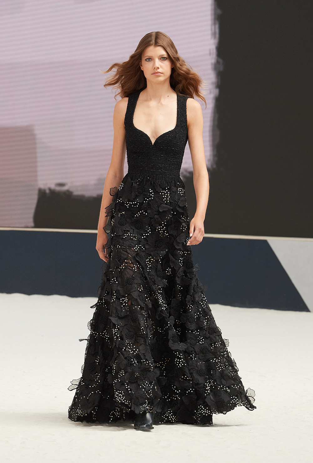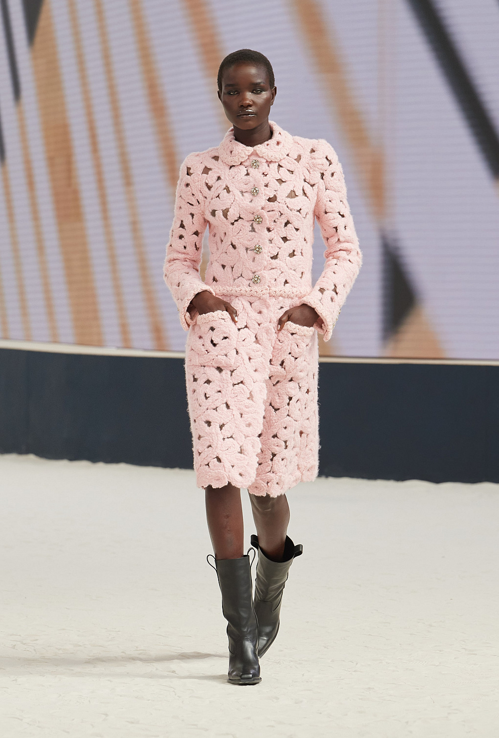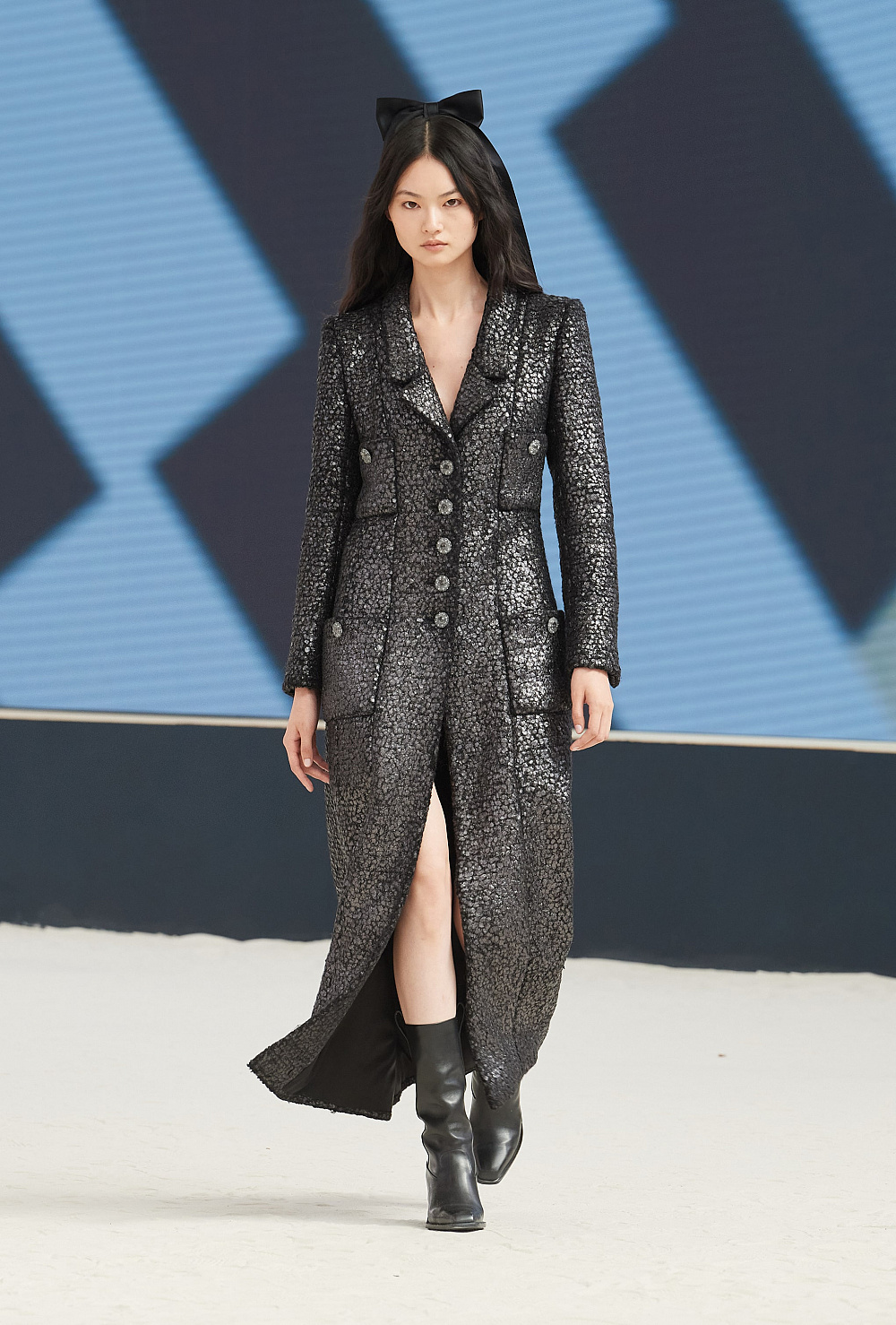 Дім моди Chanel представив кутюрну колекцію осінь-зима — 2022. Для креативної директорки Віржині Віар вона стала продовженням художнього діалогу з Ксав’є Веяном. Графічні силуети з твідом та благородними прикрасами створювали оптичні ілюзії під час показу, а Фаррелл Вільямс грав на барабанах під ексклюзивний трек для Chanel.