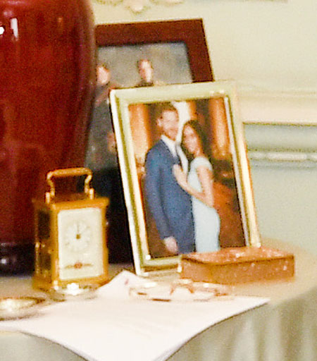 На нем новый снимок герцога и герцогини Сассекских в рамке расположился в первом ряду портретов дорогих сердцу Ее Величества людей.