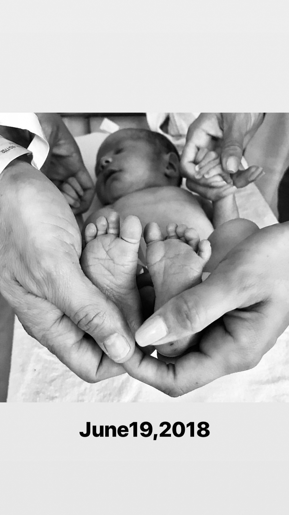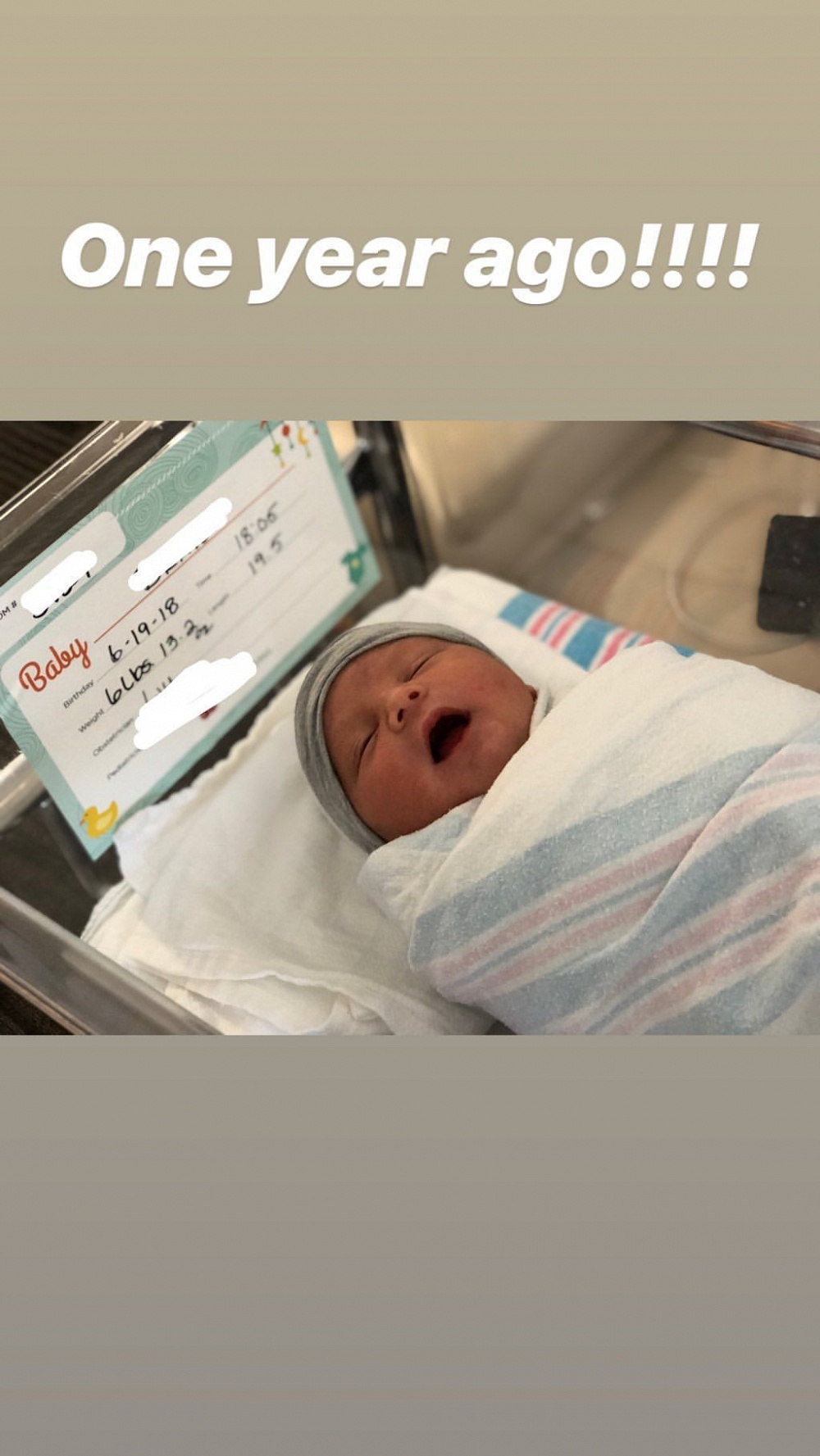 «Когда это произошло? Моему ребенку год! Он больше не младенец, он уже ребенок! Прошлый год был лучшим в моей жизни. Просыпаться каждое утро и укладывать спать каждую ночь это прекрасное создание было чем-то волшебным. Каждый его смех и улыбка были настоящей радостью. Спасибо, что выбрал меня своей мамой. Я люблю тебя, мой милый! С днем рождения, малыш Санти!»