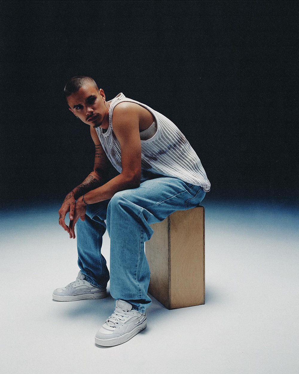 Ромео взяв участь у зйомці для рекламної кампанії кросівок Puma 180. На фото він вдало поєднав їх із total denim образом — джинсами та курткою. Нейтральним тлом аутфіту виступила базова трикотажна майка. Парубок також спробував додати поверх в’язаний напівпрозорий топ.