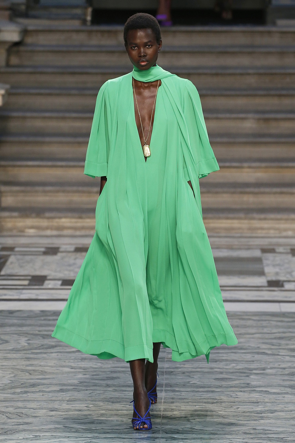 Вчера дизайнер представила новую весенне-летнюю коллекцию, в которую вошли идеальные брючные костюмы в клетку, классические пальто в карамельном оттенке и невероятно элегантные бирюзовые струящиеся платья.