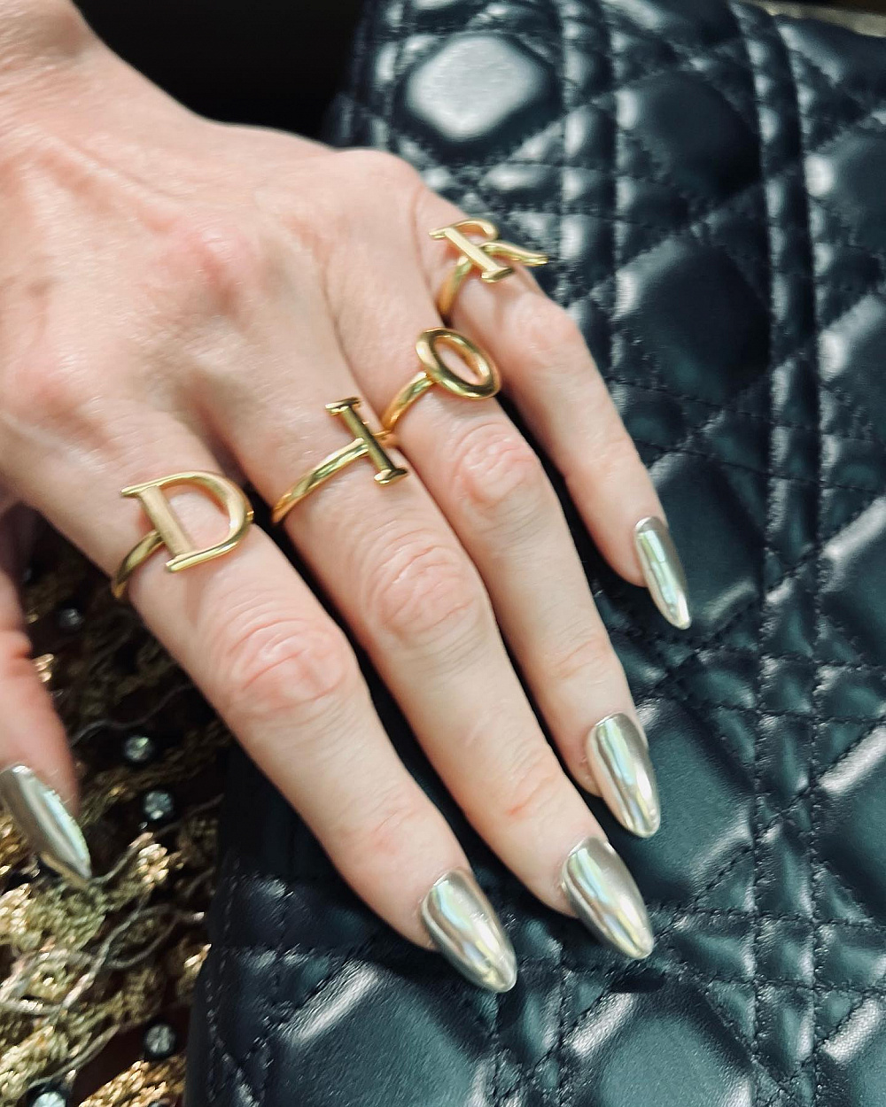Цікавою деталлю аутфіту Шарліз Терон стали чотири каблучки з літерами, що складаються у назву бренду Dior.