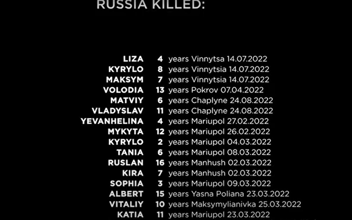 Володимир Зеленський представив відео під назвою «Список Кремля» — перелік імен 358 українських дітей, яких вбила Росія. На екрані з’явився надпис «To be continued?», а президент наголосив, що те, якою буде відповідь на це запитання, залежить від нас.