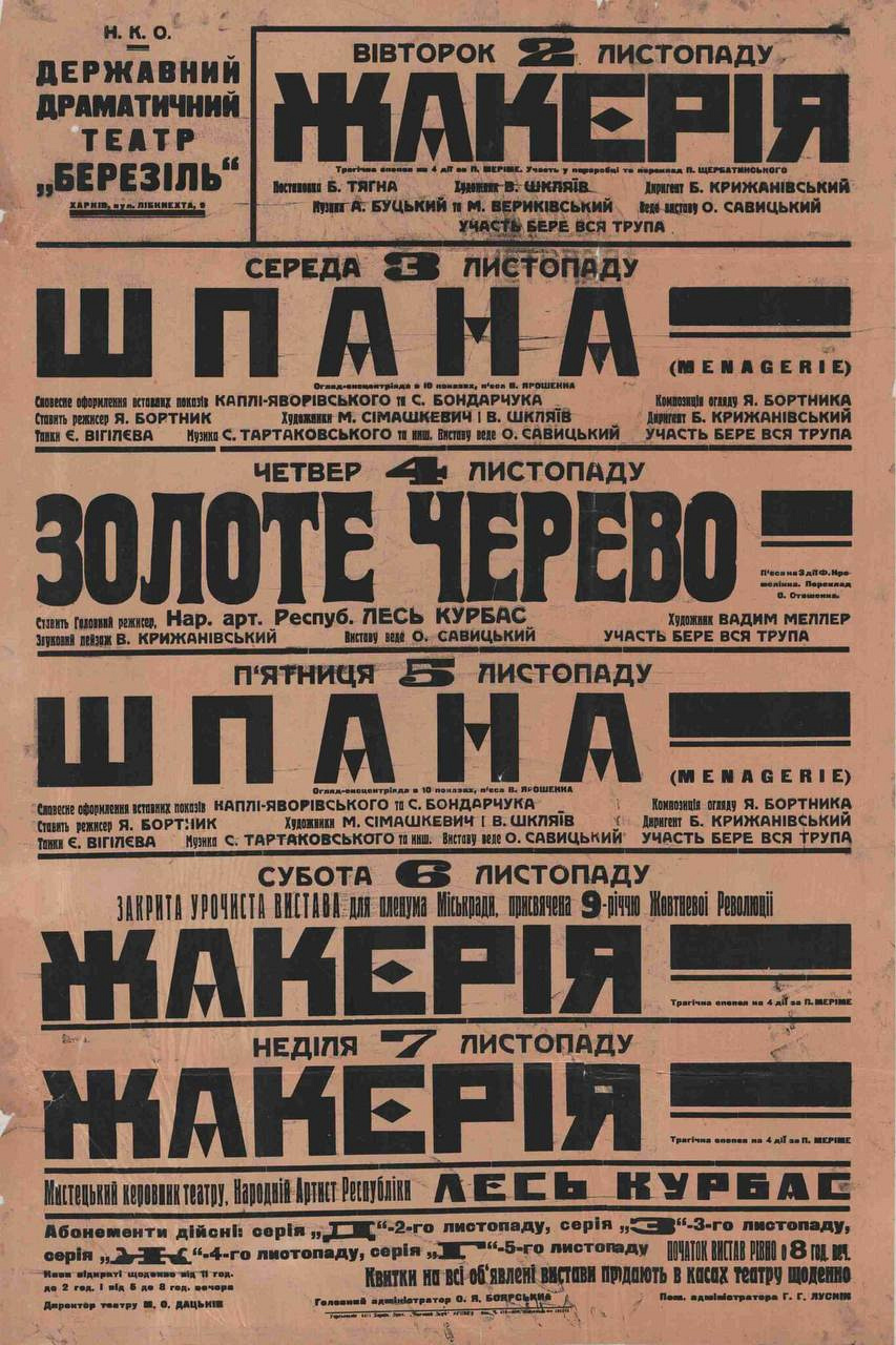 Усі постановки Курбас та актори ставили власним коштом, без професійних декорацій і розшитих костюмів, але те, що відбувалося на сцені, захоплювало глядачів і провокувало спалахи літературних дискусій. У часи свого розквіту «Березіль» нараховував 6 акторських студій, близько 400 митців, режисерську лабораторію, мюзик-хол, музей і навіть часопис «Барикади театру».