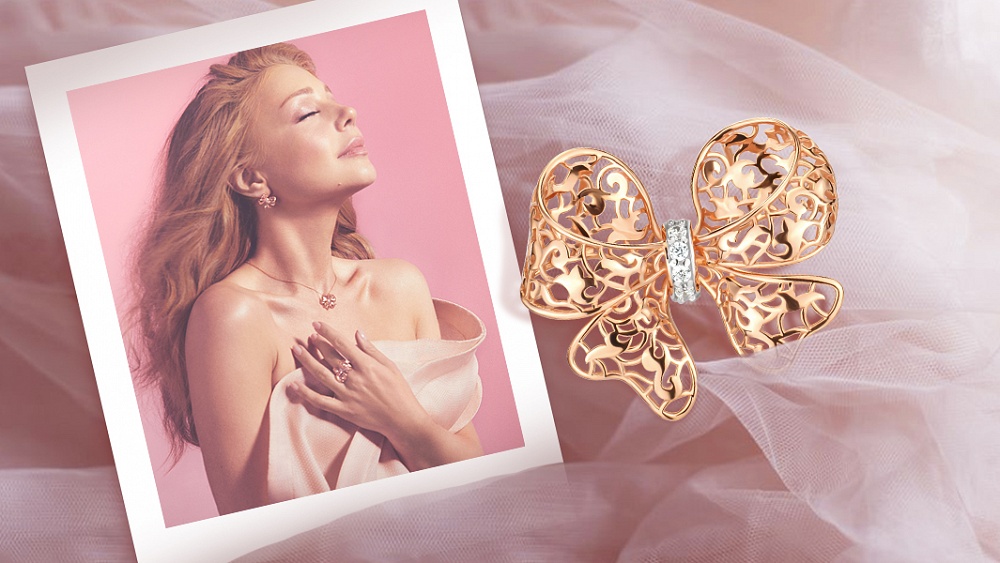 «Ювелирная коллекция «Тина Кароль» — это ажурные кольца, серьги и подвески в виде цветка пионовидной розы и бантиков из красного золота с вкраплениями фианитов. Эта серия украшений — ответ на вопрос «Где найти вдохновение»? Окружайте себя тем, что вдохновляет и воодушевляет. Ведь счастлив тот, кто способен на такое в повседневности», — сообщила Тина Кароль в своих соцсетях.