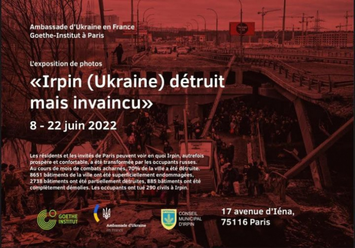 У Парижі пройде фотовиставка «Зруйнований, але нескорений Ірпінь». Захід відбудеться у Культурному центрі України у Франції та Goethe-Institut Paris. Про це повідомляє посольство України у Франції.