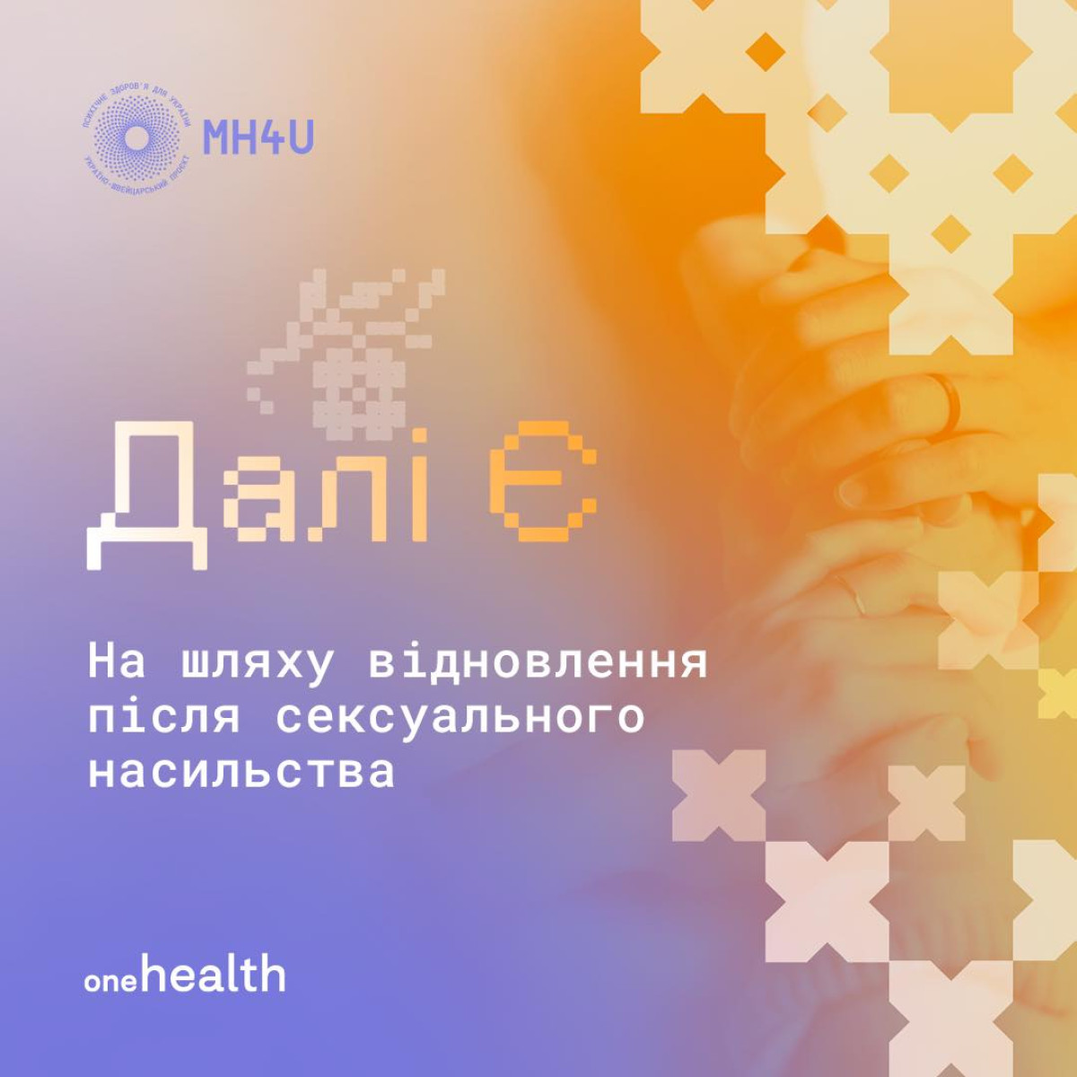 Проєкт «Психічне здоров’я для України» та консалтингова агенція One Health запустили інформаційну платформу «Далі Є» для допомоги людям, які пережили сексуальне насильство під час війни. Автори ініціативи зібрали всю необхідну інформацію про те, як та де можна отримати медичну, психологічну та юридичну допомогу.