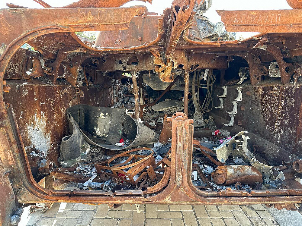 «Далі я зустрів двох молодих людей, які сміялися, дражнили один одного через відмінності між їхніми новими протезами ніг. Потім я розмовляв з молодою жінкою, яка лише два тижні тому втратила чоловіка на фронті. Усіх їх об’єднував надзвичайний гумор, а також глибока непохитна рішучість прогнати варварів і зберегти свою незалежність і суверенітет. Війна може виявляти найгірше в людях, а іноді найкраще...»