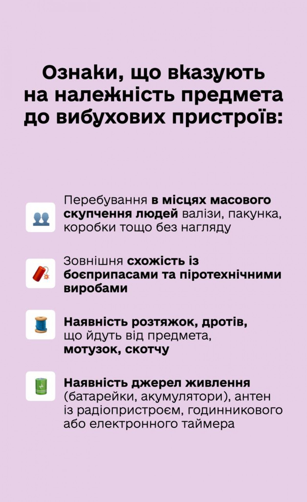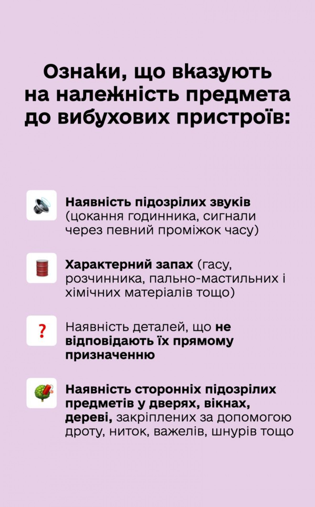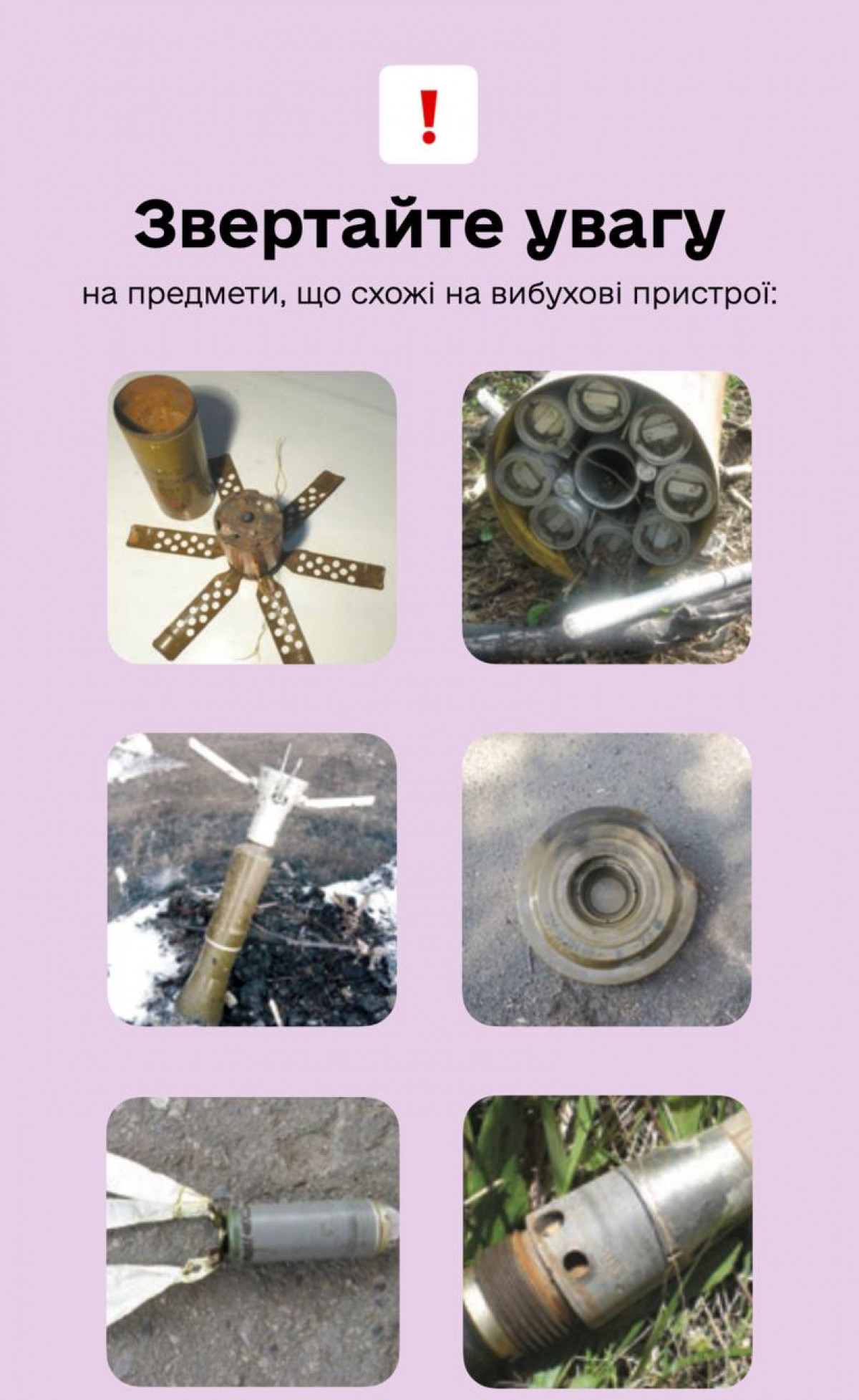 Це не означає, що треба боятися всього. Але варто бути обізнаними. Ось декілька порад, які допоможуть відрізнити вибухівку від звичайної речі.