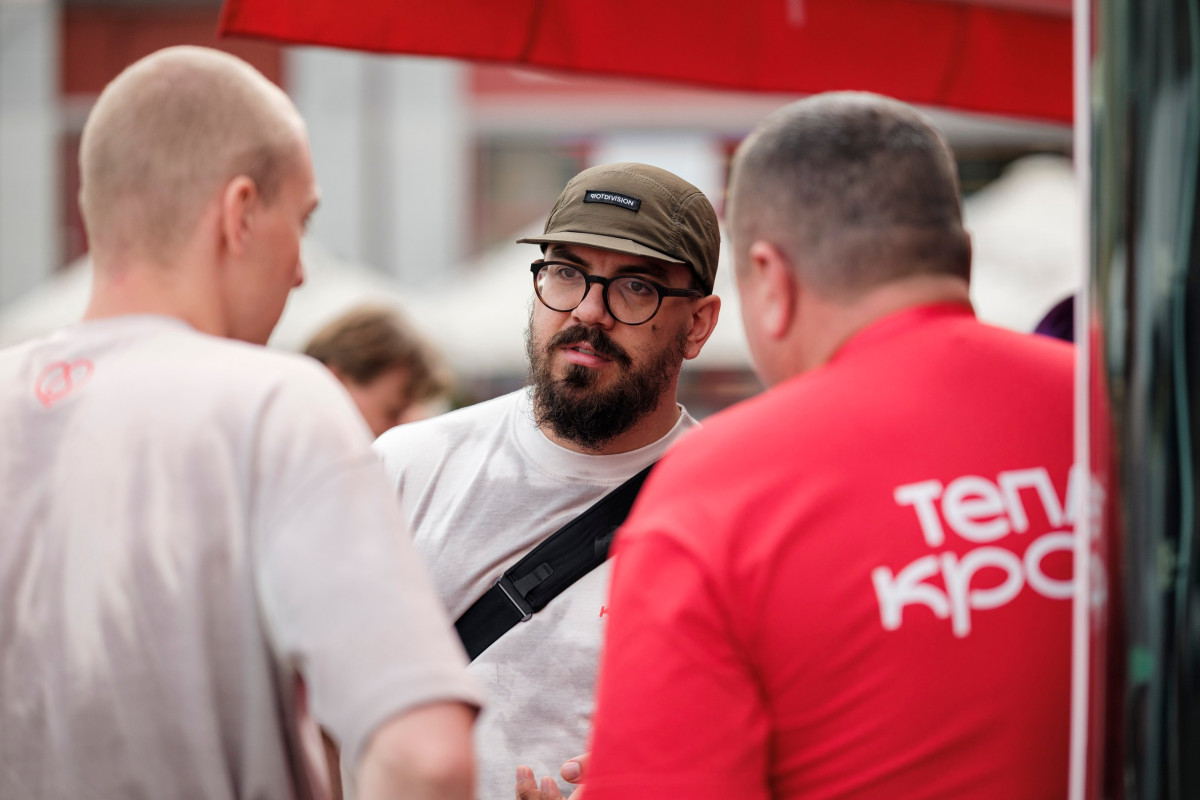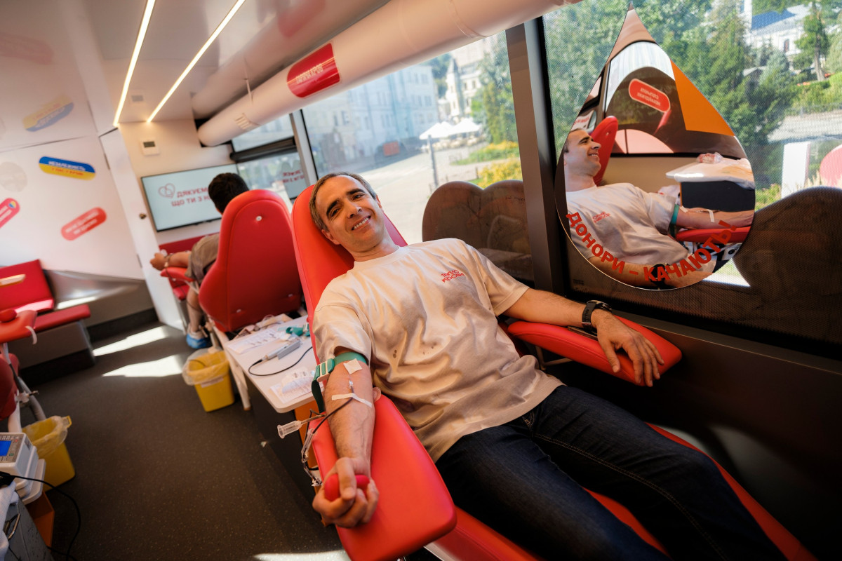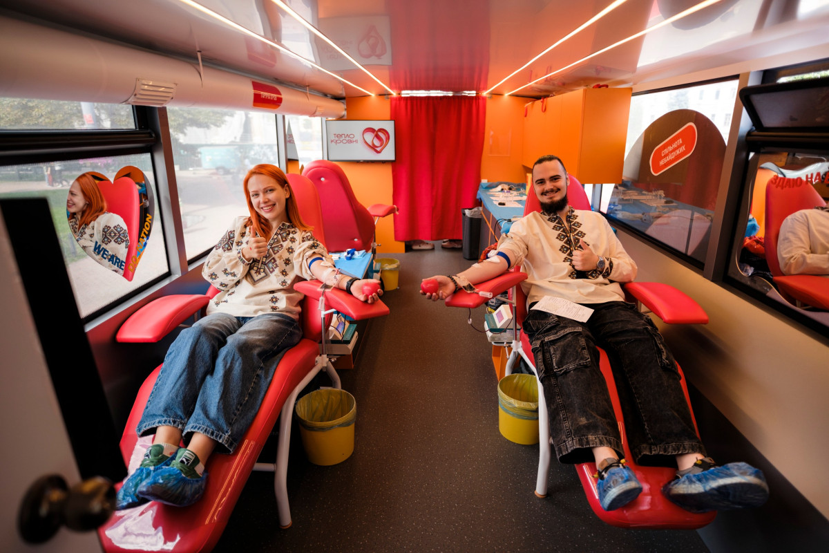 Щоб зробити процес відкритим і комфортним, разом із партнерами ми створили мобільний хаб «Теплокровні», що зовсім не схожий на лікарню: медики в яскравих червоних футболках, тепла атмосфера і дружній настрій. Ретельний інструктаж і комфортна співпраця з медиками допомагають налагодити справжній контакт із донорами та подарувати їм позитивний досвід.