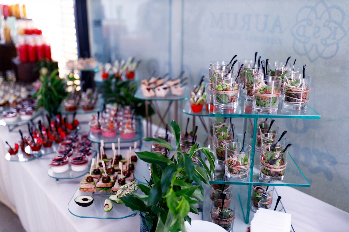 Гостей угощали лимонадами из сезонных фруктов, игристым и легкими десертами. Особенное меню для ивента разработала компания Chief Catering, которая специализируются на различных гастрономических мировых направлениях.