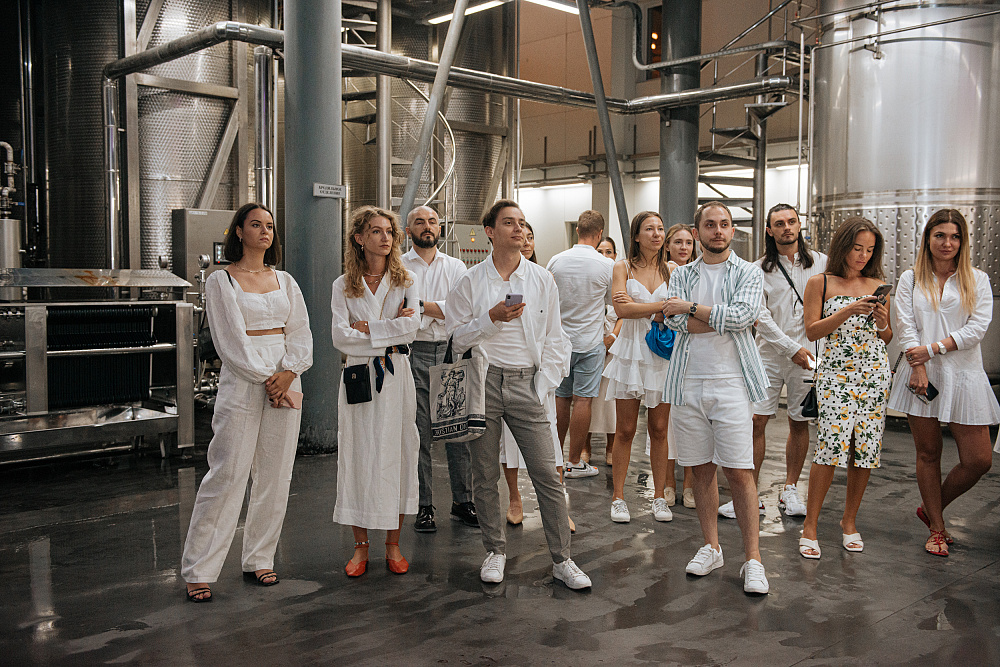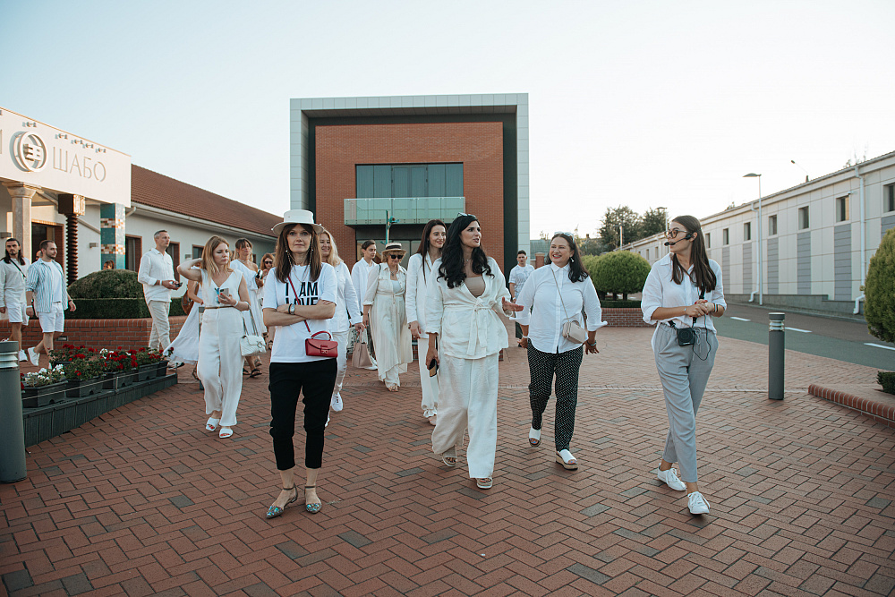Всех присутствующих ожидала насыщенная программа от партнеров вечера. Так, гости посетили Дом игристых вин и Центр культуры вина SHABO, где для них провели экскурсию и дегустацию вин. После чего все переместились на ужин в обновленный ресторан «Шабский дворик». Завершением вечера стал показ от fashion-партнера Symbol возле фонтана.