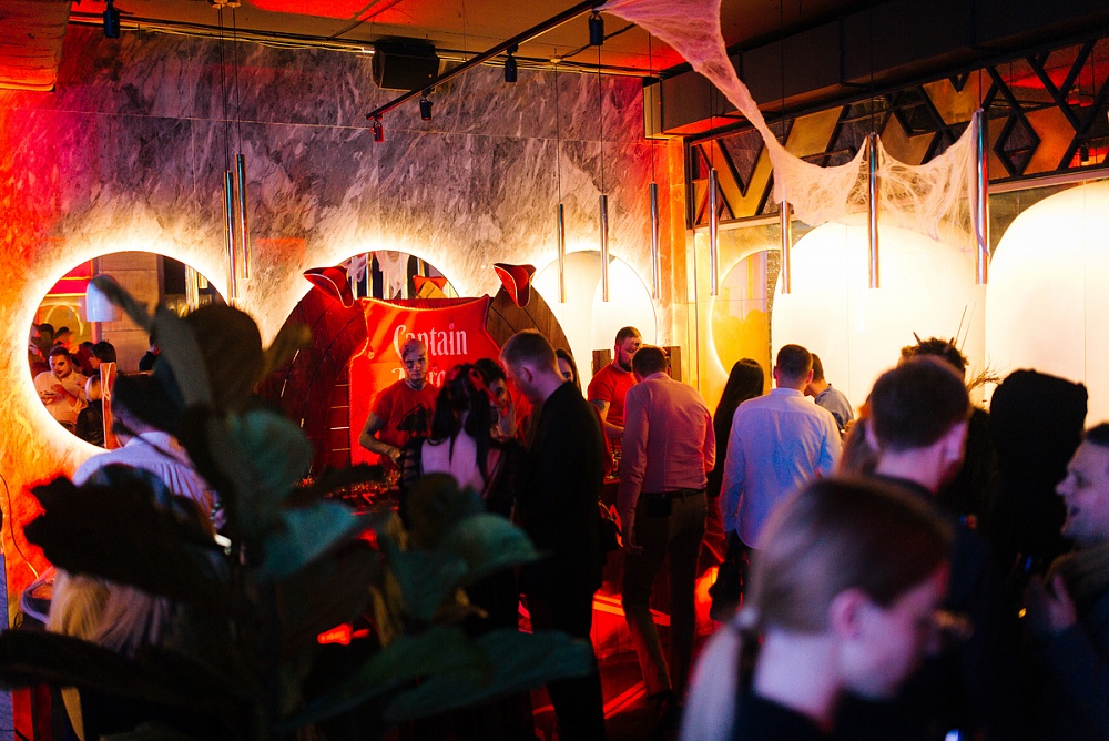 Ресторан был поделен на несколько частей с различными активностями. Под искрометные шутки ведущего вечера МС Dym и dj-set от Dj Olimpia Whitemustache гости наслаждались вкусным фуршетом и коктейлями на основе рома от алкогольного партнера Captain Morgan, ведь лучшие вечеринки проходят с этим легендарным карибским ромом. Вкусные напитки добавили вечеринке легкий оттенок пикантности.